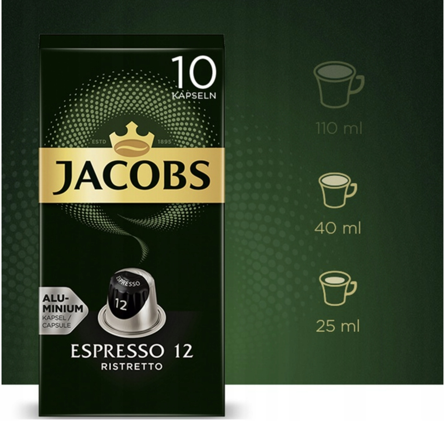- Алюмінієві капсули Jacobs Espresso Ristretto 20 штук, Intensity 12, сумісні з кавомашинами Nespresso®*