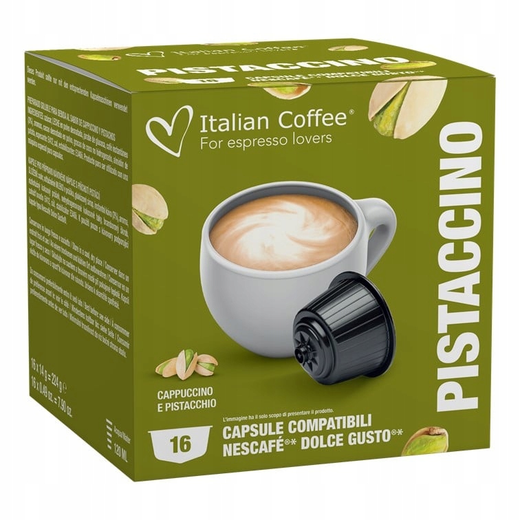 Підніміть свої кавові моменти на вищий рівень з капсулами для Dolce Gusto зі смаком кави з фісташками від Italian Coffee. Насолоджуйтеся справжньою італійською традицією!