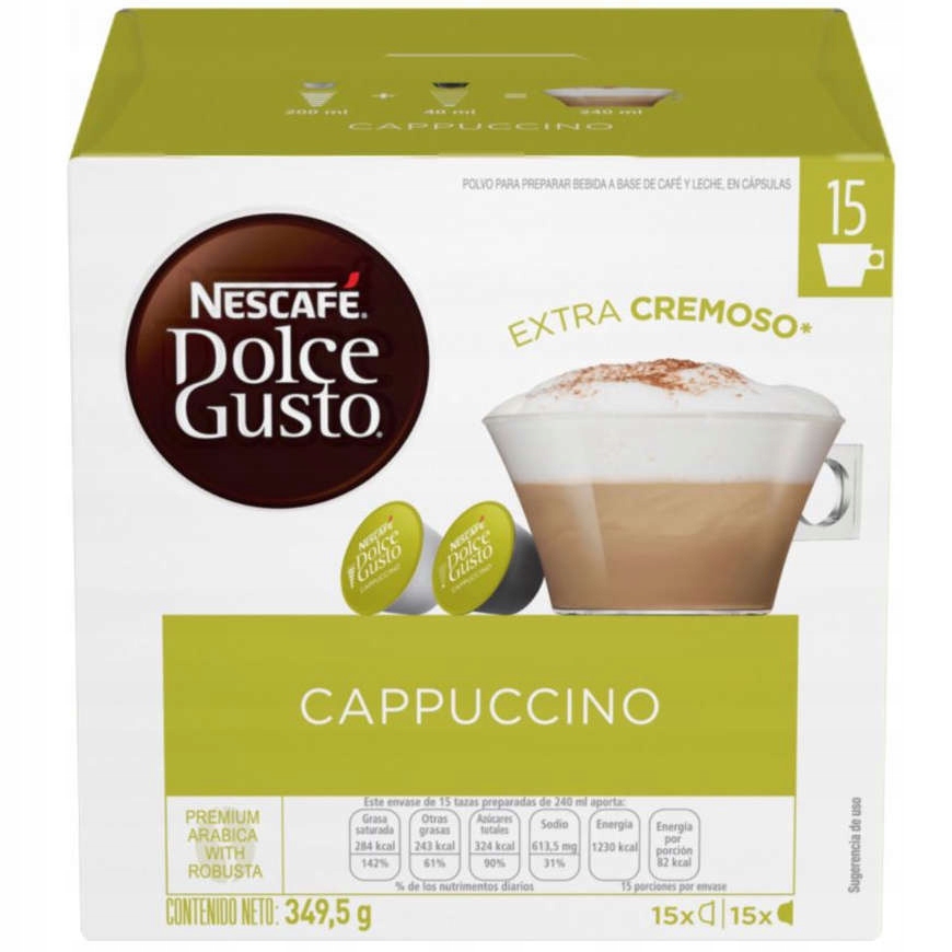 У упаковці є 30 капсул (15 з кавою та 15 з молоком), призначених для машин Nescafé® Dolce Gusto®, що забезпечує підготовку 15 чашок капучино.