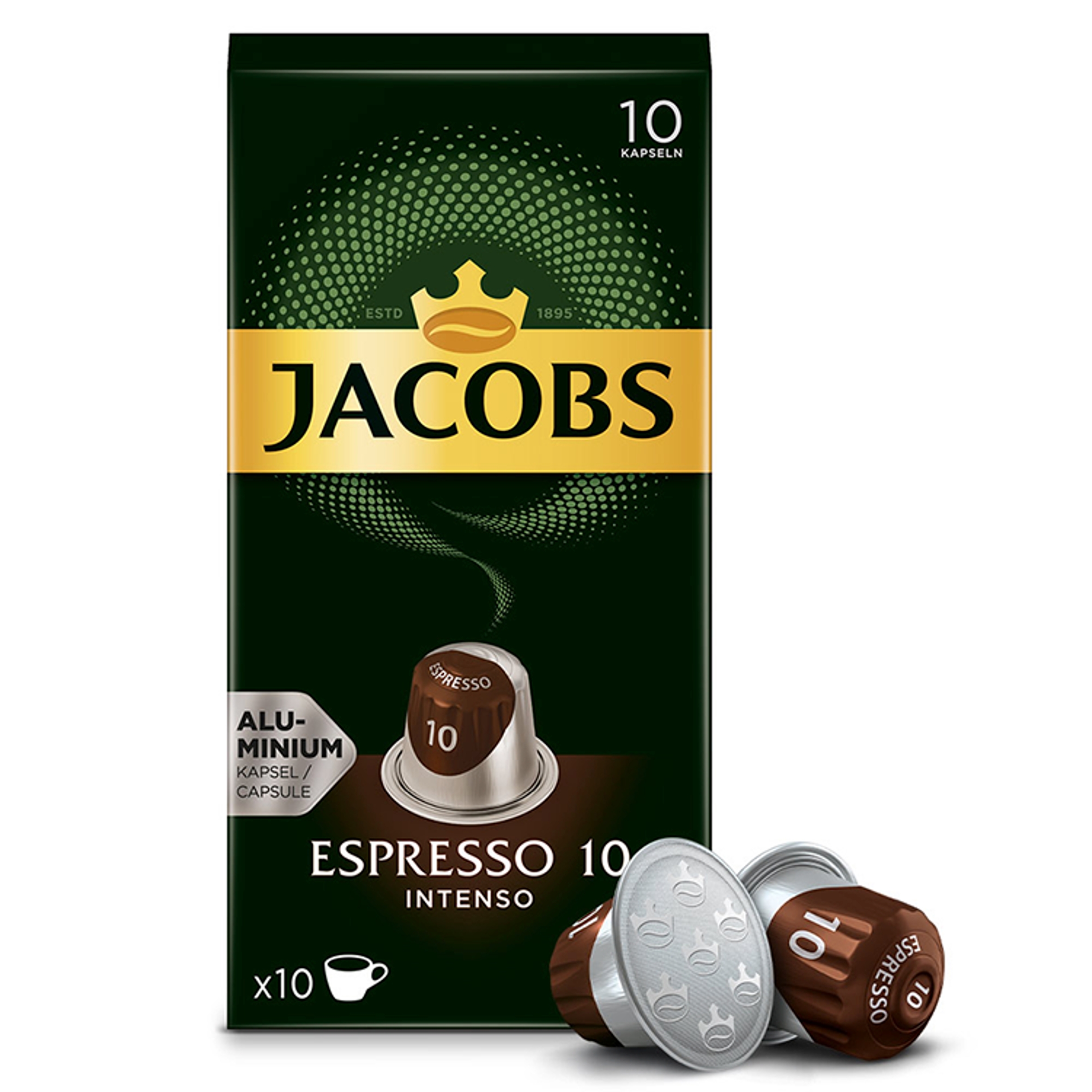 Алюмінієві капсули Jacobs Espresso Intenso 10 штук, Intensity 10, сумісні з кавомашинами Nespresso®*