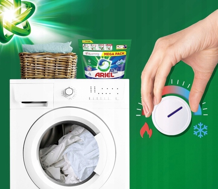 Призначено для прання білих і світлих тканин. Рекомендовано такими провідними виробниками, як Whirlpool, Electrolux, Candy, Beko. Спеціально відміряні та закриті капсули миючого засобу Ariel All-in-1 PODS Mountain Spring забезпечують чудове видалення бруду навіть за низьких температур. Вони ефективно видаляють багато різних типів плям.
