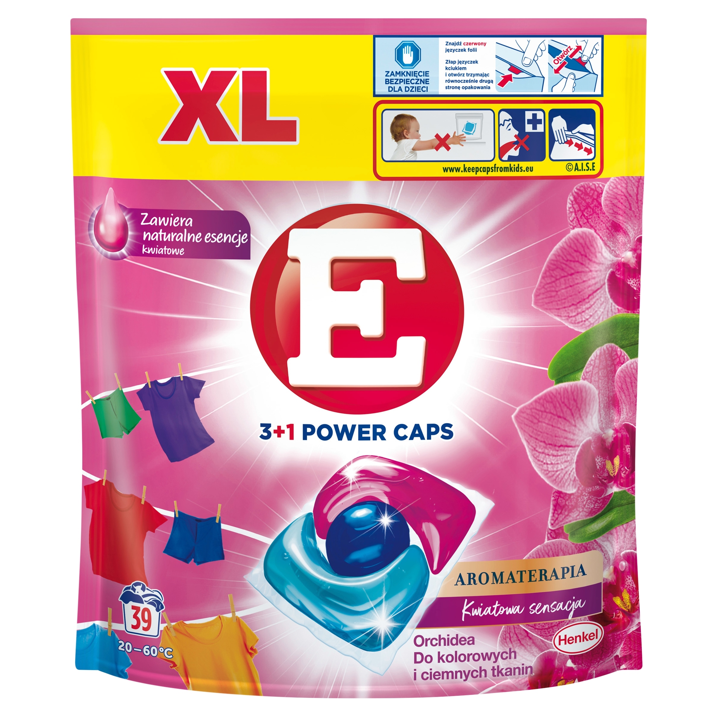 Надзвичайна ефективність прання в одній маленькій капсулі. E Power Caps 3+1 - засіб для прання кольорових і темних речей. Три потужності, поєднані в 3 камерах однієї капсули, забезпечують гігієнічно чисту білизну та винятково концентровану силу прання. Продукт додасть вашому одязі унікальний і тривалий аромат орхідеї.