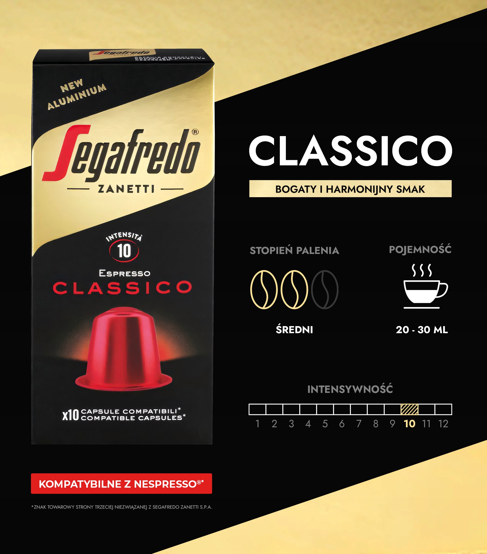 Нові алюмінієві капсули Segafredo Zanetti Espresso Classico сумісні з домашніми кавомашинами, що використовують систему Nespresso®* Original.