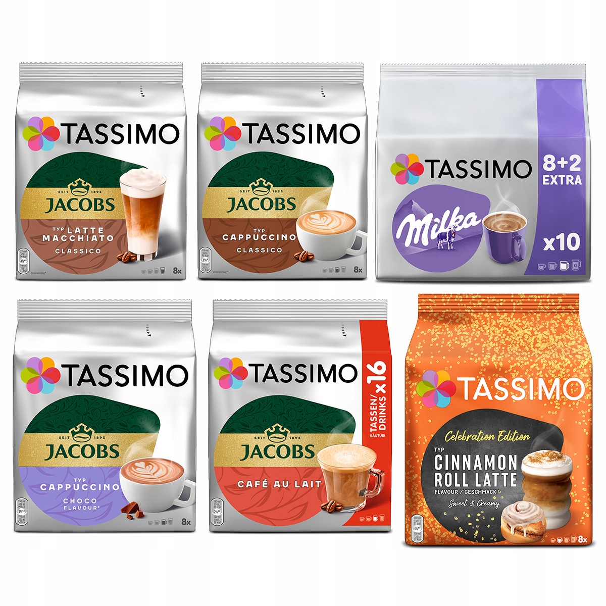 Капсули Tassimo Jacobs, молоко та ароматизована кава, 5+1 упаковка БЕЗКОШТОВНО!