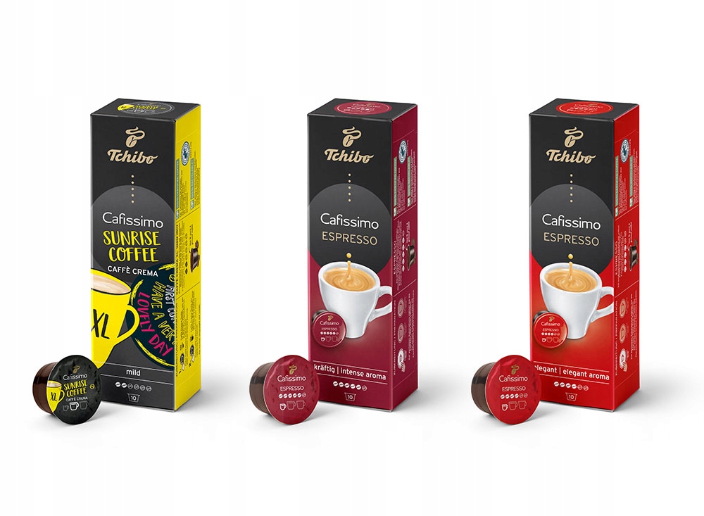 У капсульному наборі Tchibo Cafissimo: Elegant + Intense + Crema XLви отримуєте три абсолютно різні види кави.