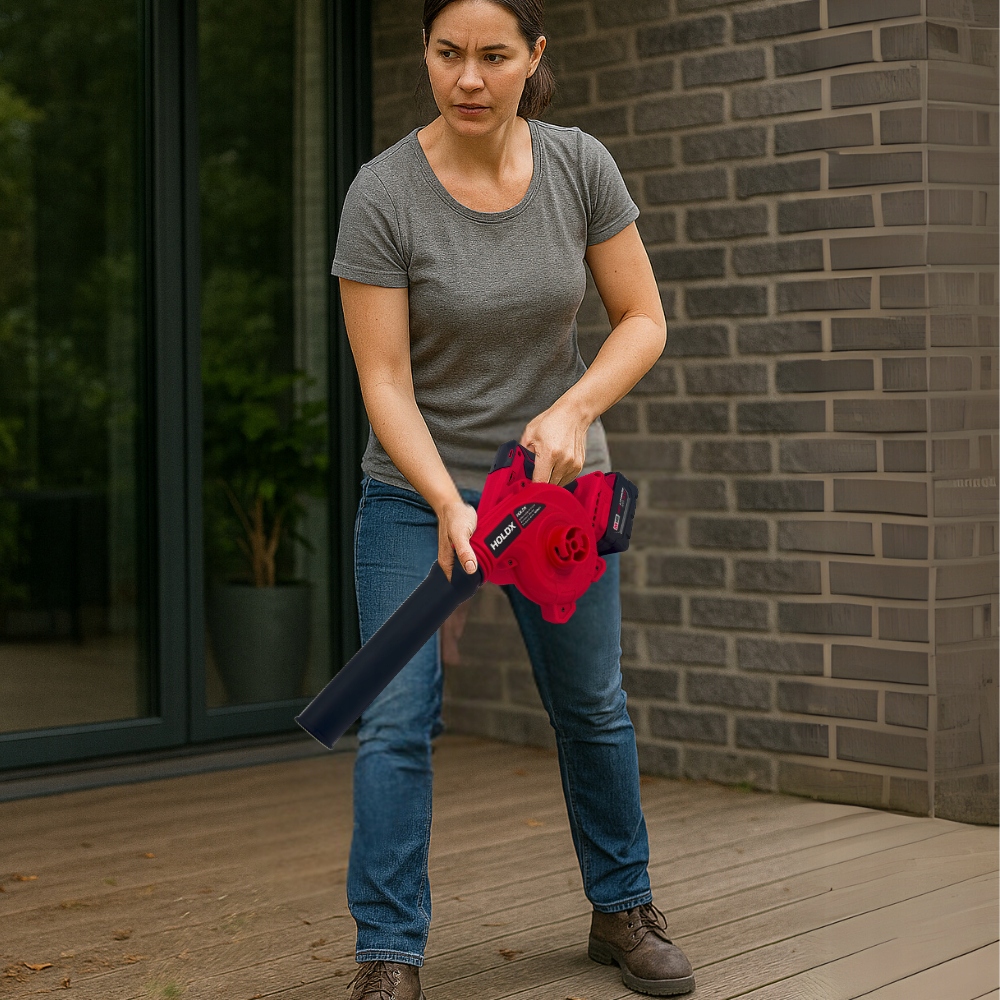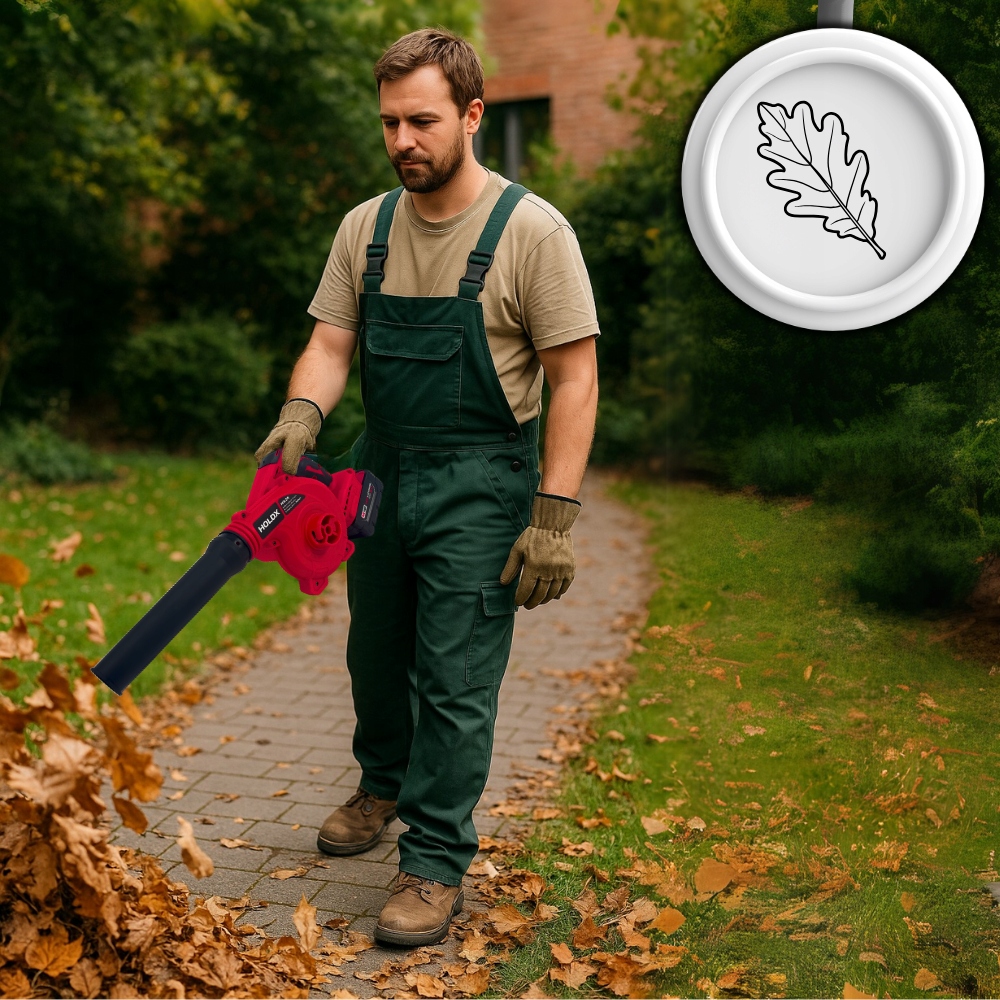 Функціональність та мобільність без кабелів! Універсальний вентилятор акумулятора 2IN1 - це незамінний інструмент для очищення саду, проїзної частини або майстерні. Завдяки можливості дме і смоктати листя в одному пристрої, ви швидко відносяєте порядок без зайвих зусиль. Легкий, зручний і сильний - ідеально підходить для кожного користувача!