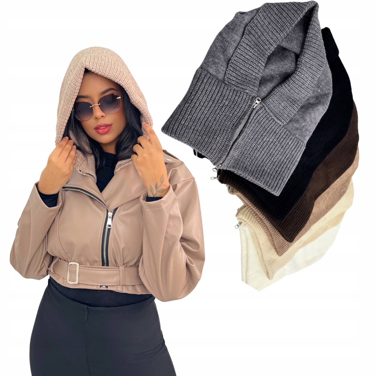 Капюшон із шарфом на блискавці мокко Один розмір