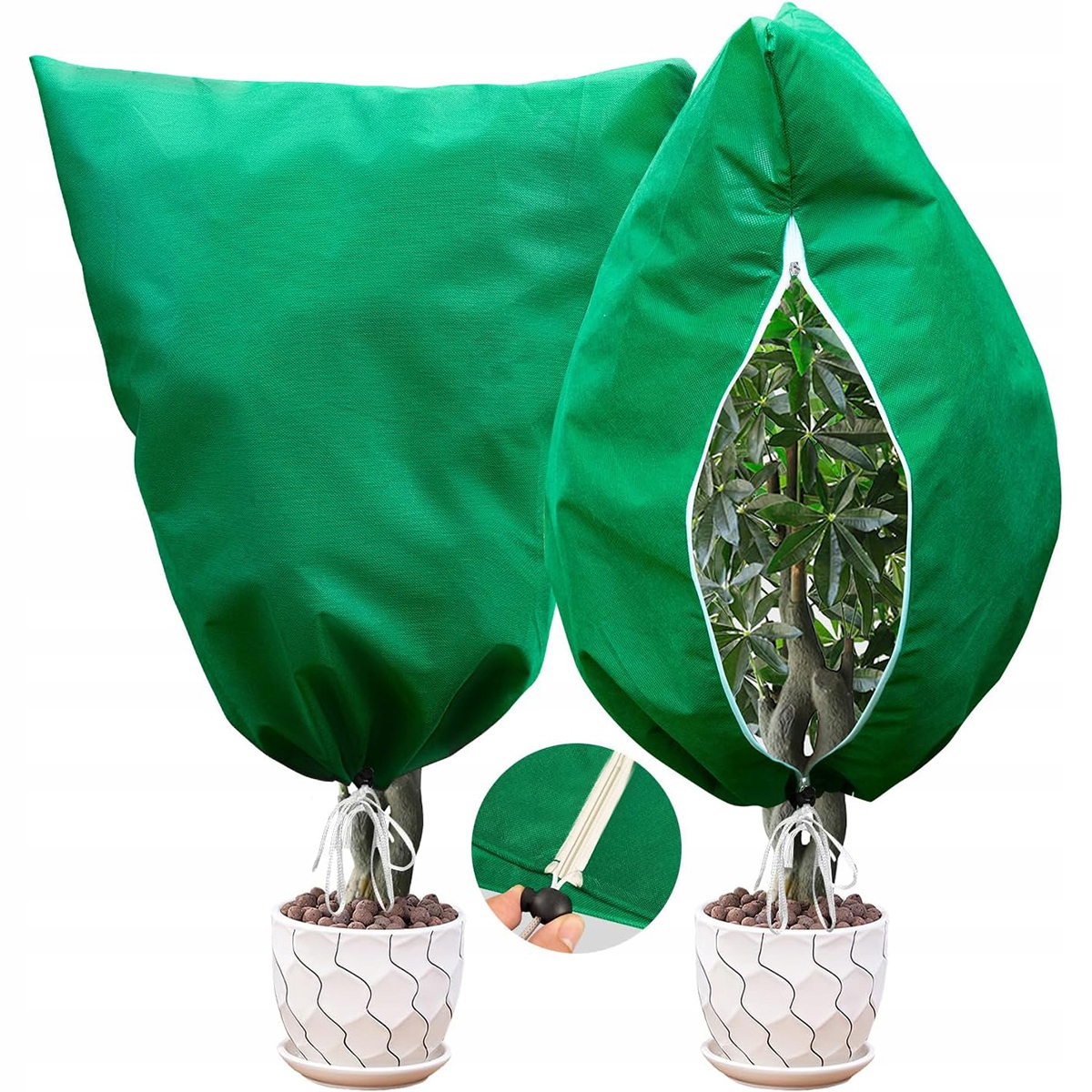 Наш рослинний чохол складається зі шнурка та блискавки. Спочатку розстебніть блискавку, потім потягніть її вгору, коли вона досягне потрібного положення, а потім потягніть за шнурок, щоб завершити збірку.
