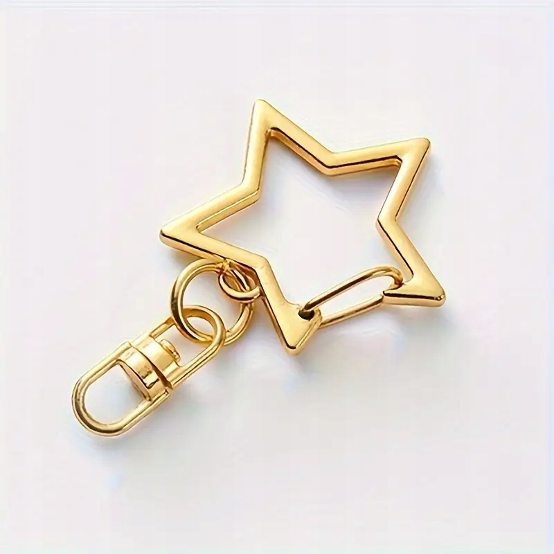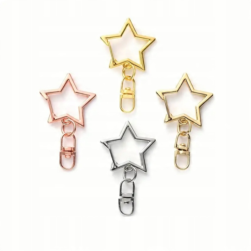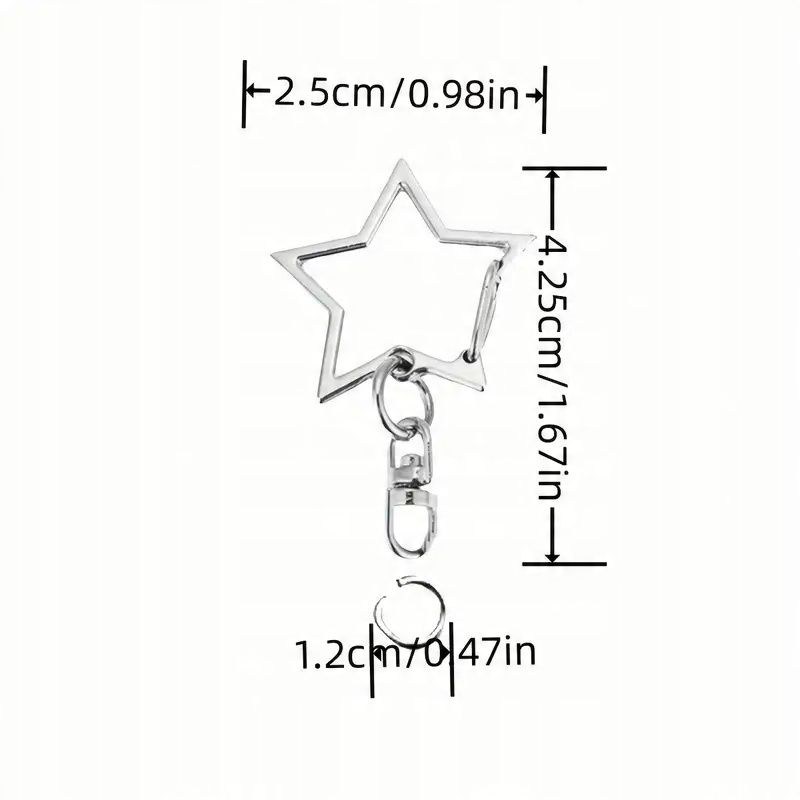 4 Зірка форми. 2 штуки включені.Ключове кільце закрите, як класичний карабін, обертове розширення між двома колесами кріпиться до великої зірки. Клітина в своєму кінці (прикріплена з пухкою) підходить для закріплення кулонів та інших декоративних елементів. Чудова база для виготовлення декоративного ключового кільця.