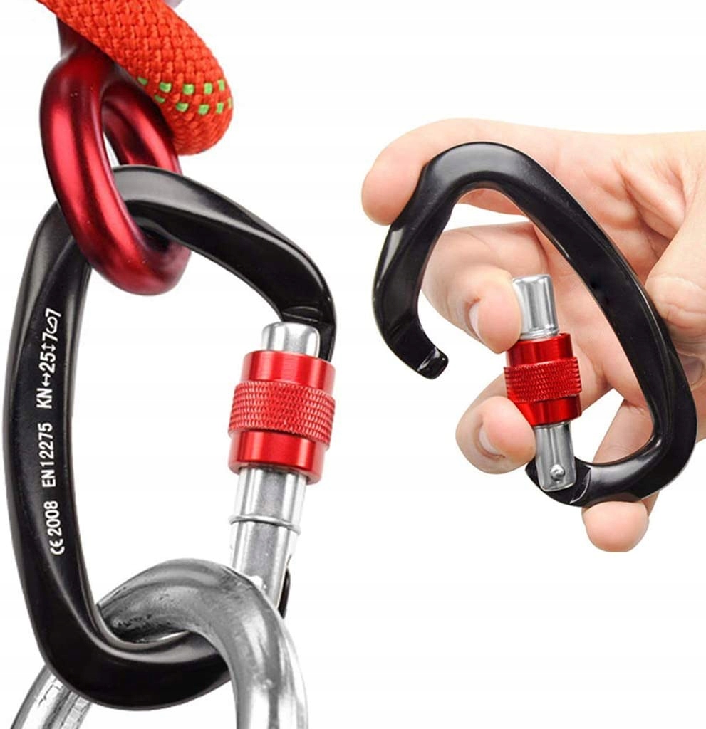 Міцний і безпечний Довговічний карабін використовує авіаційний алюміній 7075 з високою міцністю головної осі, приблизно 25 кВт Sia 5500 LB короткий близько 8 KN Sia 1750 LB розблокування 7 KN приблизно Sia 700 кг Надлегкий і сертифікований CE карабін має CE, щоб ви відчували себе в безпеці та чудово Широкий спектр використання Карабін можна використовувати для походів у гори, скелелазіння, стрибків, скелелазіння, репування, порятунку, кемпінгу, замикання гамака, крісла, гойдалки, повідків для собак, важких сумок тощо. Безпечний для використання в приміщенні та на вулиці D-форма полегшує використання надійно закріплений на великій осі, яка може мати навантаження 2500 кг. Гвинтівки з блокуванням затвора Високоякісна конструкція з різьбовою гайкою на засувці повертає затвор вручну, коли відкривається та замикається, що м’яко та не застряє