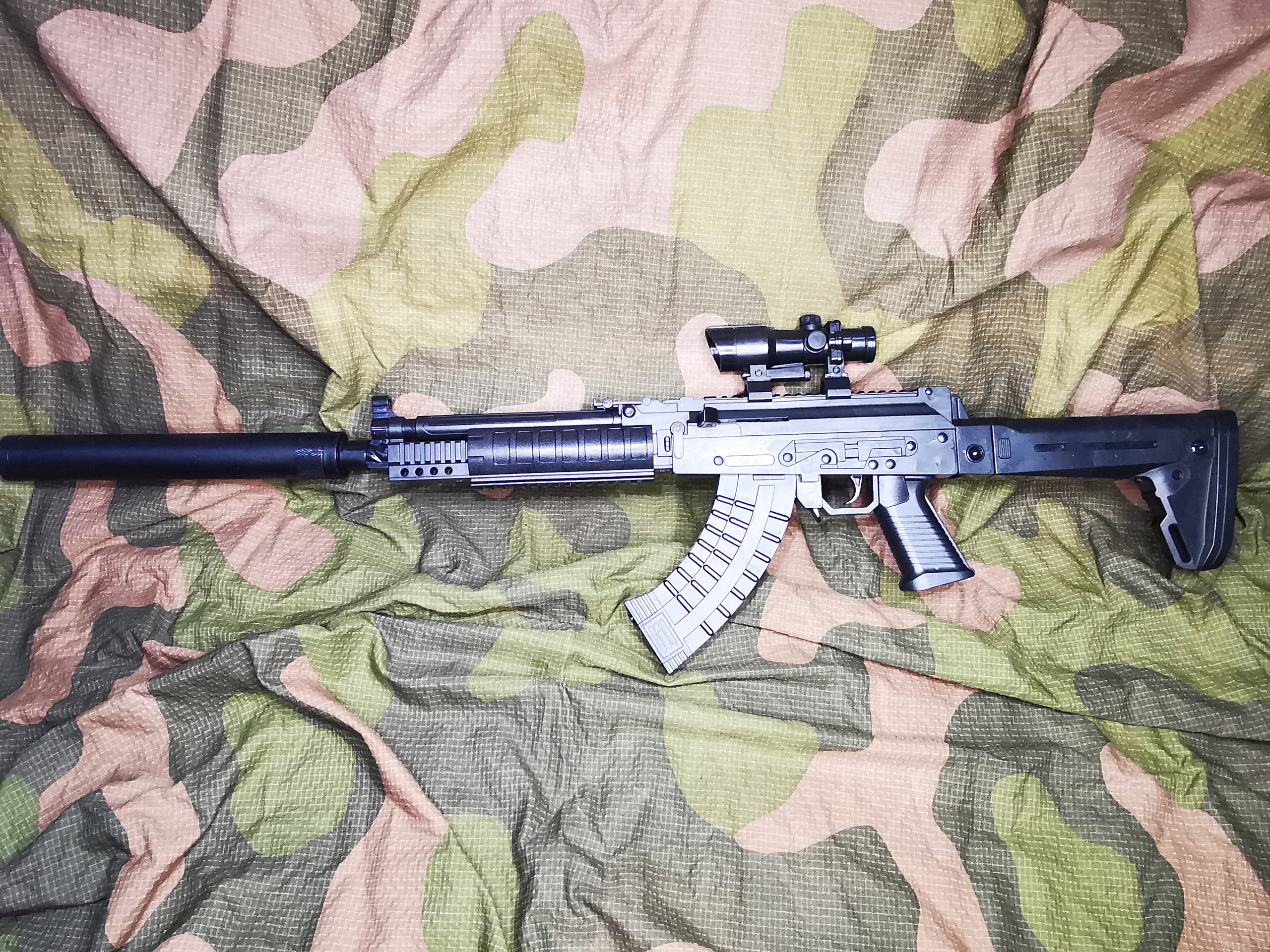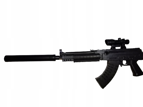 Модель, яка була дуже популярною протягом багатьох років. Це одна з базових моделей у нашій пропозиції. Виготовлений повністю з міцного пластику ABS. Складається зі стійкої платформи, знімного зарядного магазину, глушника (знімного) і стартового комплекту ББ. За потреби приклад можна скласти