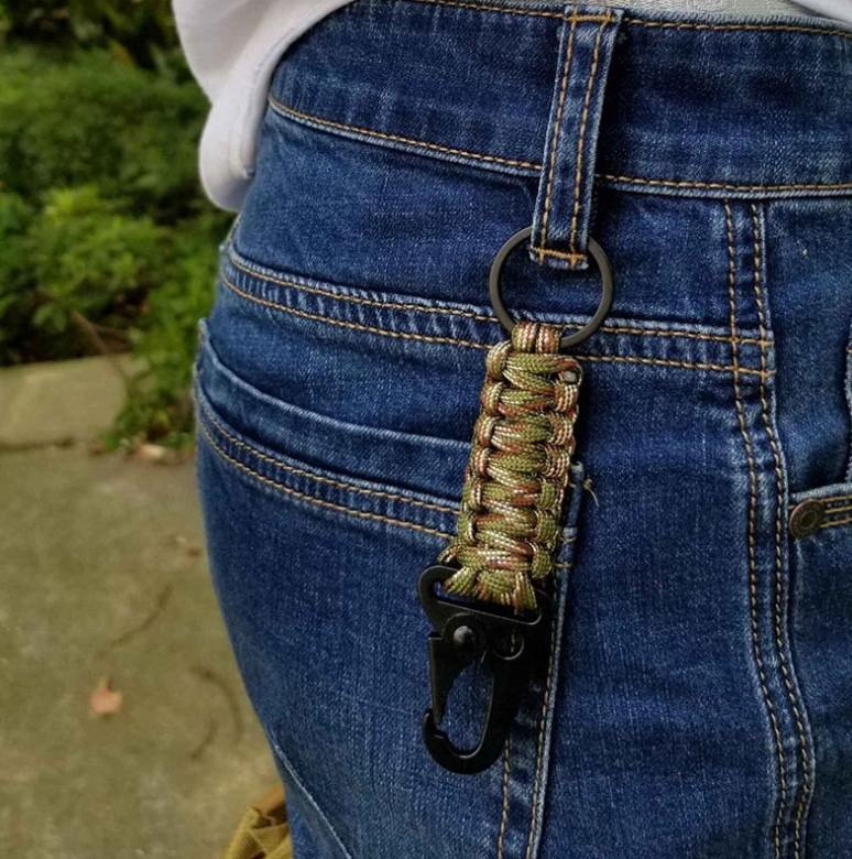 Карабін з паракордовим шнуром - це спорядження для виживання, яке завжди можна мати під рукою. Брелок виготовлений з паракорду, з металевим кільцем і карабіном для використання в екстрених ситуаціях. Металеві деталі стійкі до іржі та потемніння.