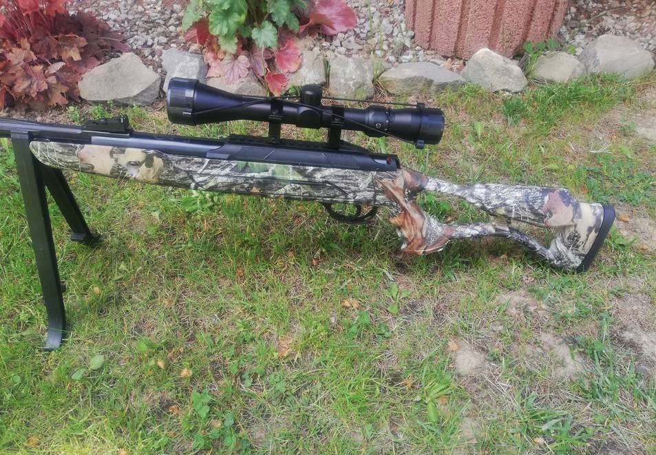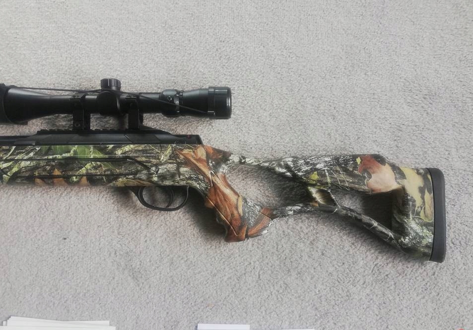 Вітровка має посилену пружину в порівнянні з попередніми моделями, завдяки чому є найміцнішою прикладом у своєму ціновому діапазоні з отвором для великого пальця, покритим Mossy Oak камуфляж.