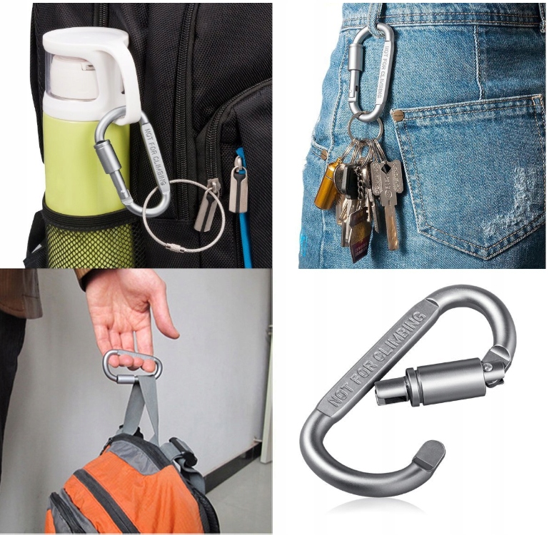 Великий, міцний карабін із замком дуже універсальний і може використовуватися в різних цілях, він дуже добре працює як брелок або як звичайний карабін (за винятком альпінізму), дозволяючи прикріплювати різноманітне спорядження до ремінь, рюкзак або тактичний жилет.
