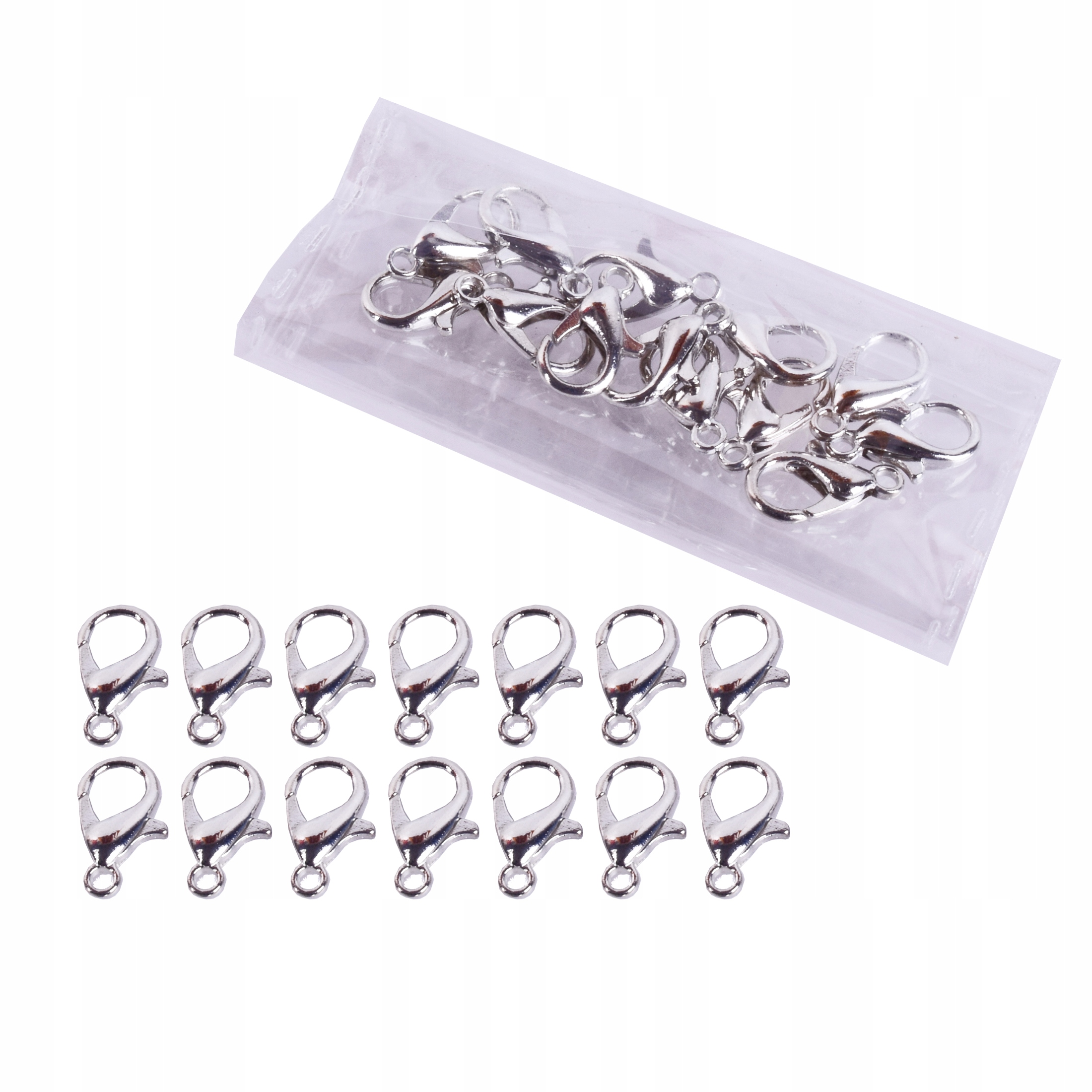 КАРАБІНИ 12 мм 14 шт. СРІБЛИВИЙ ЗАЖИМ