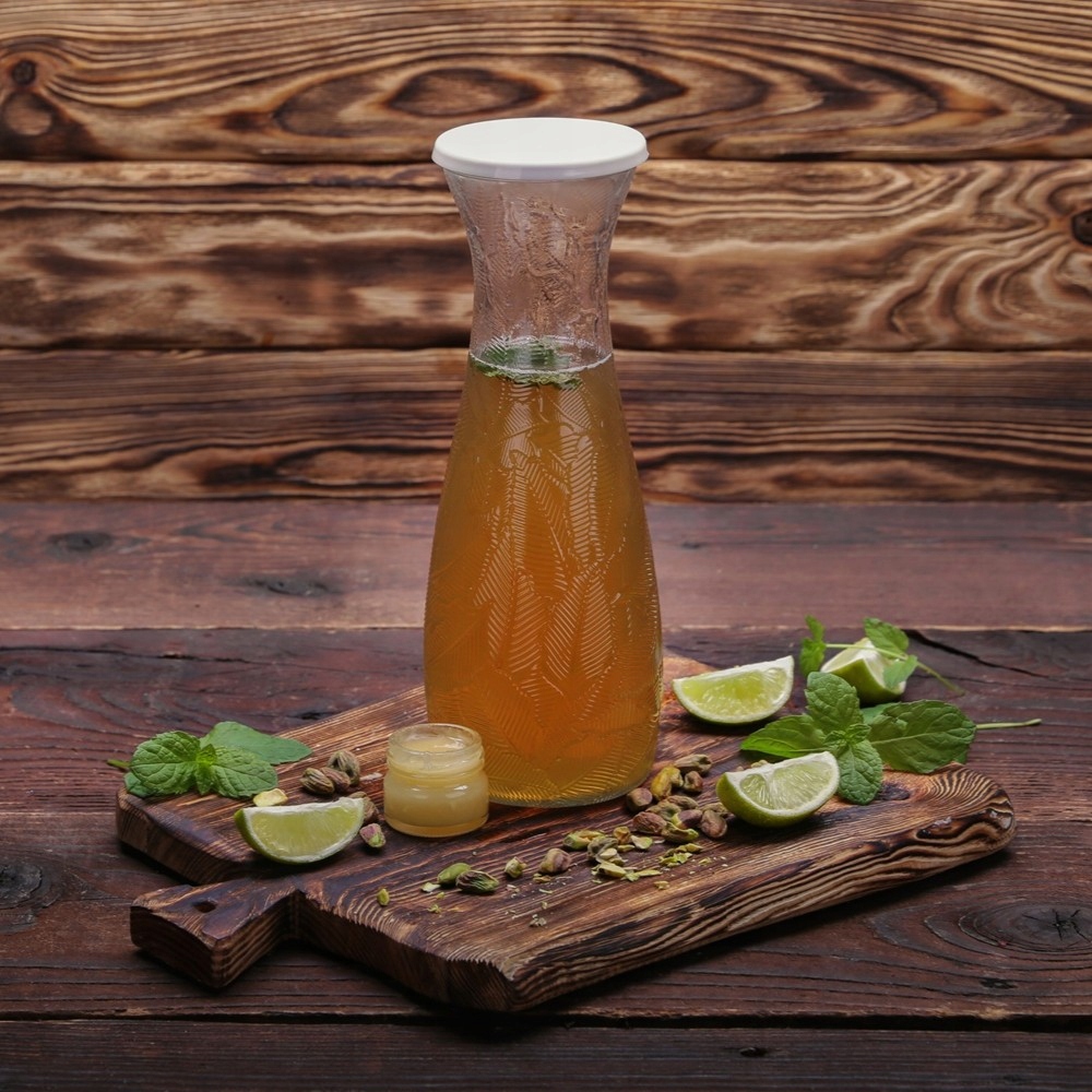 Зроблено з високої якості скла o ємності 1 літр , захоплюється хитромудрою моделлю листя, яка тонко перепліталася на поверхні скла. Кришка напої залишаються свіжими, а стильний дизайн приваблює кожну нагоду.