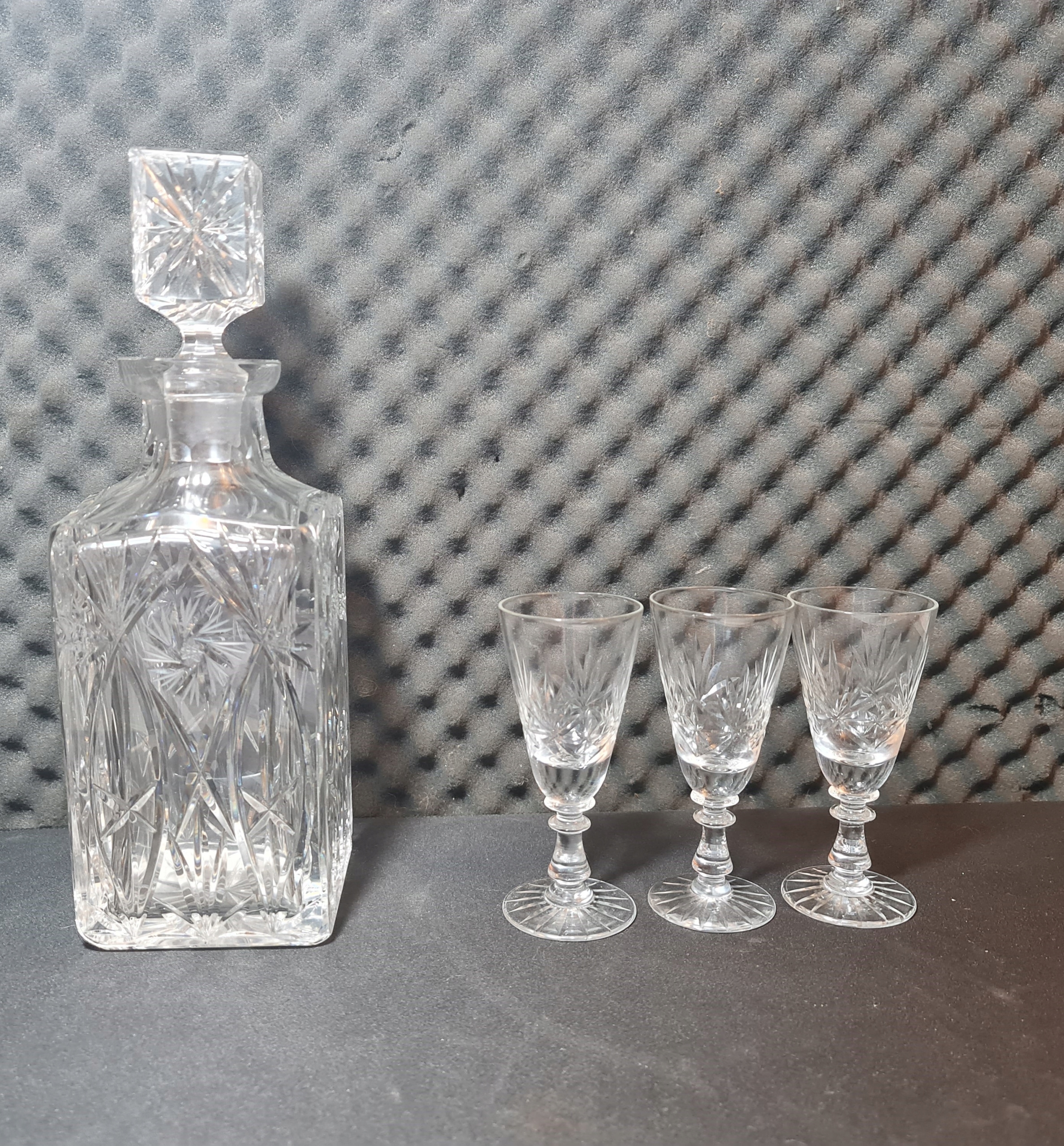KARAFKA I KIELISZKI KRYSZTAŁOWE GRUBE SZKŁO PRL