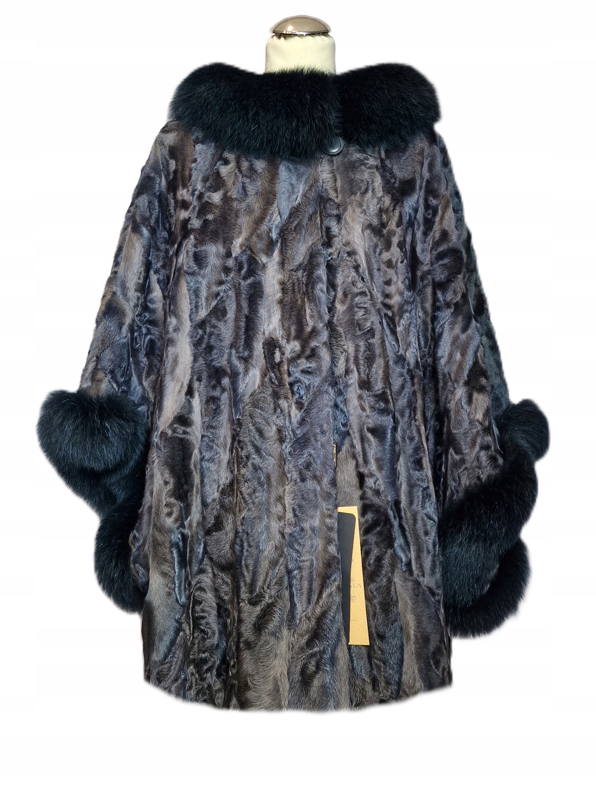 Каракула Каракуле з серцями за шиєю та манжетами пофарбованої срібної лисиці.
