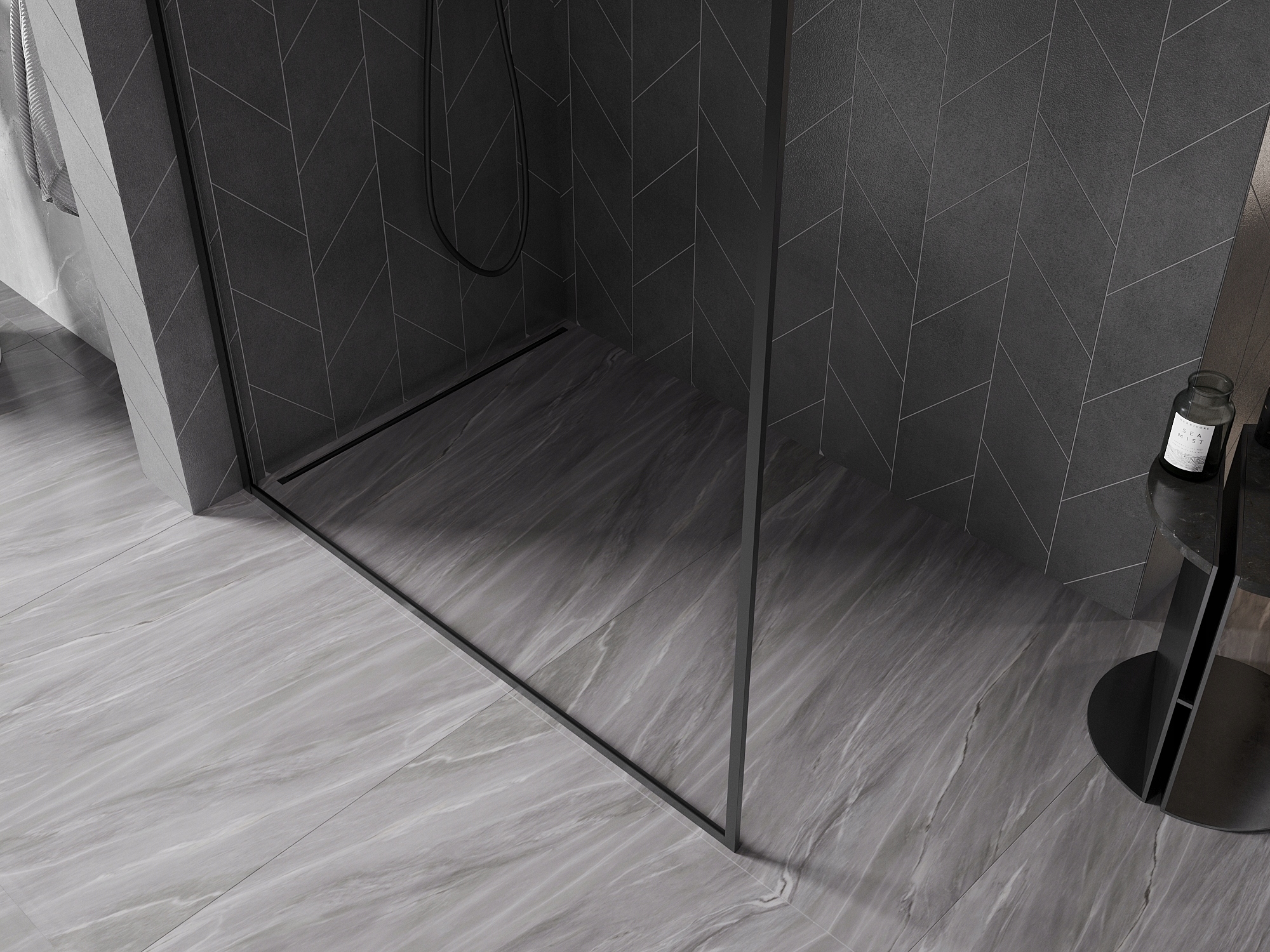 Мексен Кіото-XF Душова стінка з рамою 110 х 202 см, 10 мм прозора, чорна - 800-110-104-70-00-X