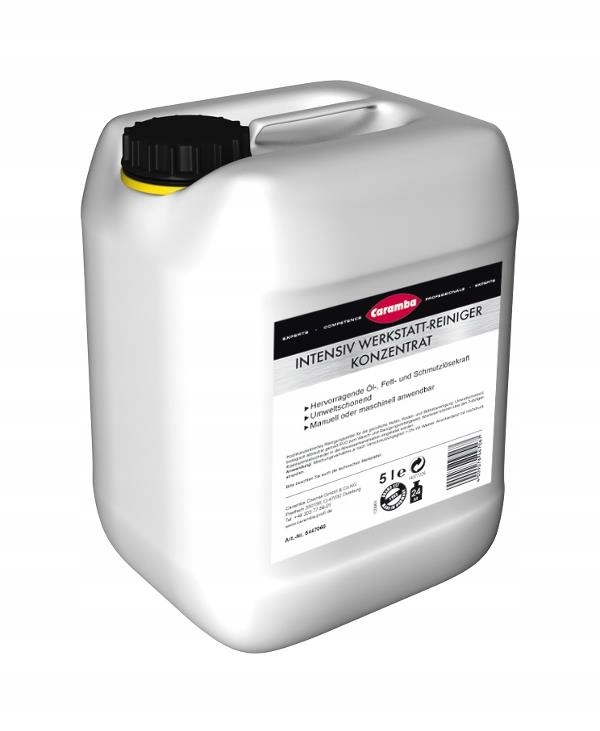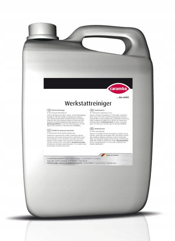 Універсальний засіб для чищення майстерень CARAMBA має відмінні властивості для розчинення масла, жиру та бруду. Він екологічно чистий, оскільки біологічно розкладається відповідно до Закону про миючі та чистячі засоби. Багатофункціональний засіб для чищення майстерень CARAMBA має здатність до самоемульгування, тобто відділення масла та жиру відбувається автоматично. Стічні води можна скидати в каналізацію через сепаратор коалесцентної/легкої рідини.