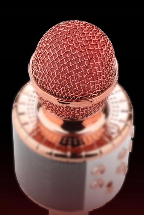 блискучий колір металік завжди дуже популярний. Ефектний дизайн доповнюється делікатним підсвічуванням динаміків, які під час увімкнення світяться синім кольором. На вибір є 3 кольори мікрофона - чорний, рожево-золотий (мідний) і золотий. Цеідеальний подарунок незалежно від віку.
