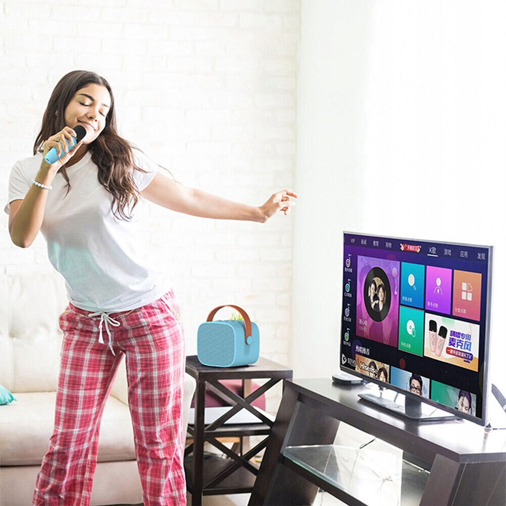 - Портативна машина караоке для дітей та дорослих, її розмір 90,4x65x75,5 мм, лише 455 г, легко виховується дітьми, щоб взяти його в будь -яке місце.