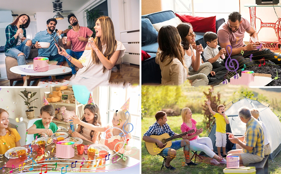 Довге відтворення: Це обладнання для караоке для дітей має вбудований акумулятор, який забезпечує до 5-10 годин відтворення. Дитячі мікрофони швидше завантажуються і мають довший час роботи акумулятора. Пристрій караоке оснащений двома мікрофонами для співу соло та в дуеті. Незалежно від того, чи це день народження, навчальна подія, пригода на свіжому повітрі тощо, цей портативний динамік Bluetooth та бездротовий мікрофон забезпечать задоволення. 272 грам, діти можуть легко виховувати його і носити з собою. Оновлюючи пристрій караоке до версії Bluetooth 5.3, ви можете насолоджуватися швидшими з'єднаннями та скоротити час конфігурації сеансу караоке. Ви також можете легко підключити інші пристрої через Bluetooth, TF, USB -привід, AUX.