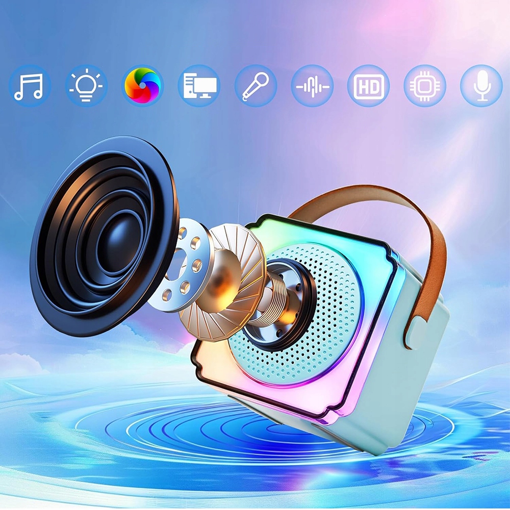 🎤 міні -караоке з бездротовим мікрофоном пропонує відмінну якість звуку завдяки вдосконаленому процесору цифрового сигналу та високоефективних динаміках, що дозволяє кожній продуктивності звучати як професійний концерт, забезпечуючи унікальний звуковий досвід.