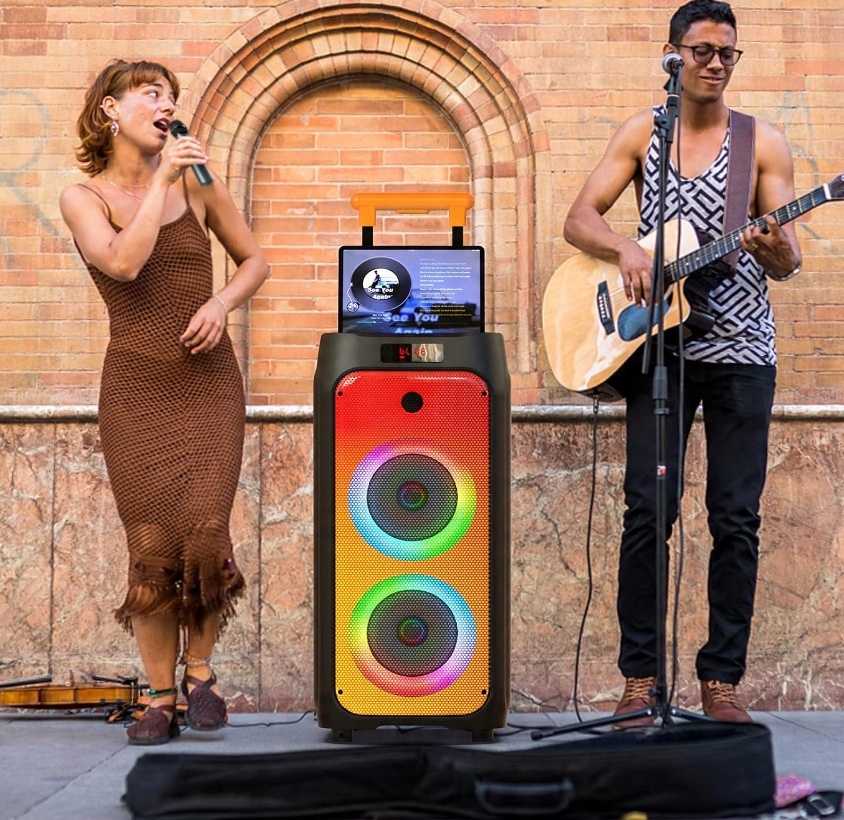- Вбудований акумулятор великої ємності, повний заряд можна використовувати протягом 6-8 годин, якщо ви хочете використовувати довше, ви можете підтримувати заряд постійно (підтримуйте зарядку під час прослуховування музики), насолоджуйтесь гарною музикою. Караоке-машина JYX для любителів активного відпочинку, збільшені колеса та ручка, більш зручна