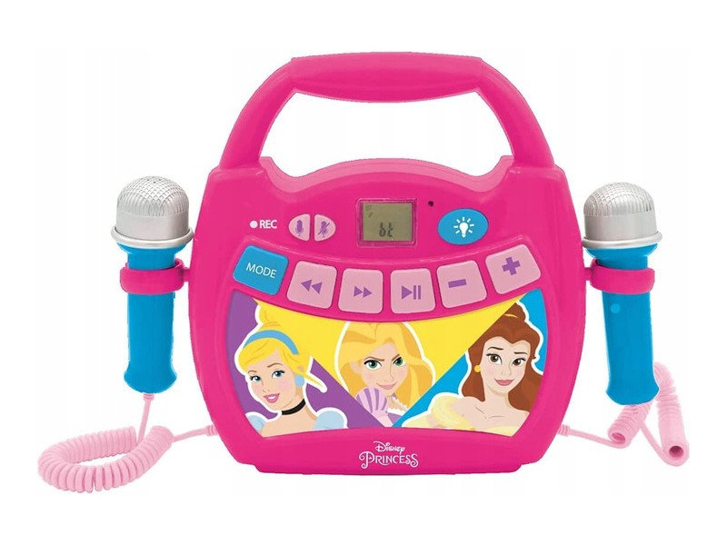 Виробник Lexibook представляє мобільний караоке для дітей, прикрашений графікою популярних принцес прямо від Disney. У свою чергу, мікрофони точно виправдають очікування всіх користувачів. Високоякісні матеріали, з яких виготовлена колонка, роблять пристрій ідеальним для дитячої кімнати. Крім того, передня панель підсвічується різними кольорами.