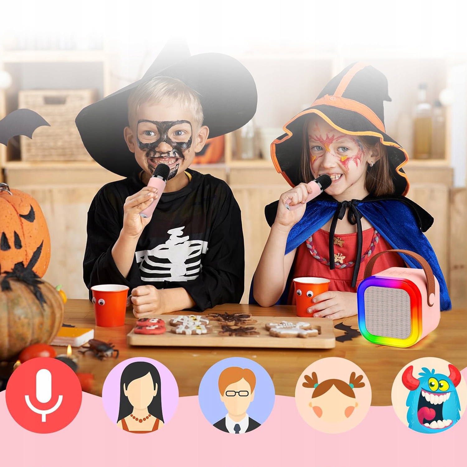 - 🎤 - 【Ефект зміни голосу】: Ви можете змінити свій голос, щоб він звучав різним. Мікрофон для караоке пропонує 4 голосові ефекти, включаючи голос дитини, чоловіки, жінки та чудовисько. Розмір динаміка Bluetooth становить 8,3 х 6,2 х 8,5 см, а це означає, що він дійсно портативний. Його можна використовувати як динамік для подорожей і легко вмістити в мішок для подорожей або валізу. 4 Завдяки чудовій якості звуку, стильному зовнішньому вигляду та функціонуючим користувачам, це, безумовно, стане хітом для всіх, хто його любить.