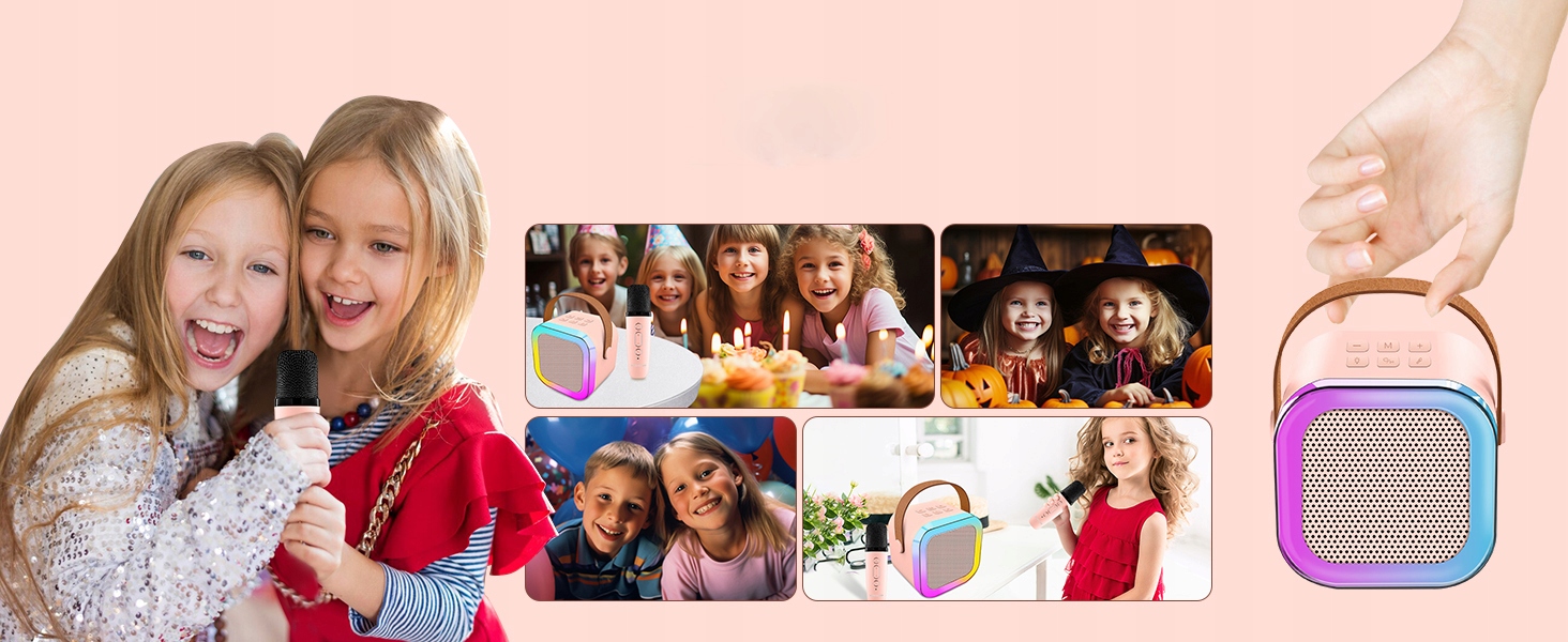 - 🎤 - 【3 Режими світлодіодного освітлення】: Міні -гравець має 3 режими світлодіодного освітлення (третій режим активується лише під час відтворення музики). Цей продукт може бути чудовим обладнанням для караоке для дорослих, воно компактне для менших дітей.