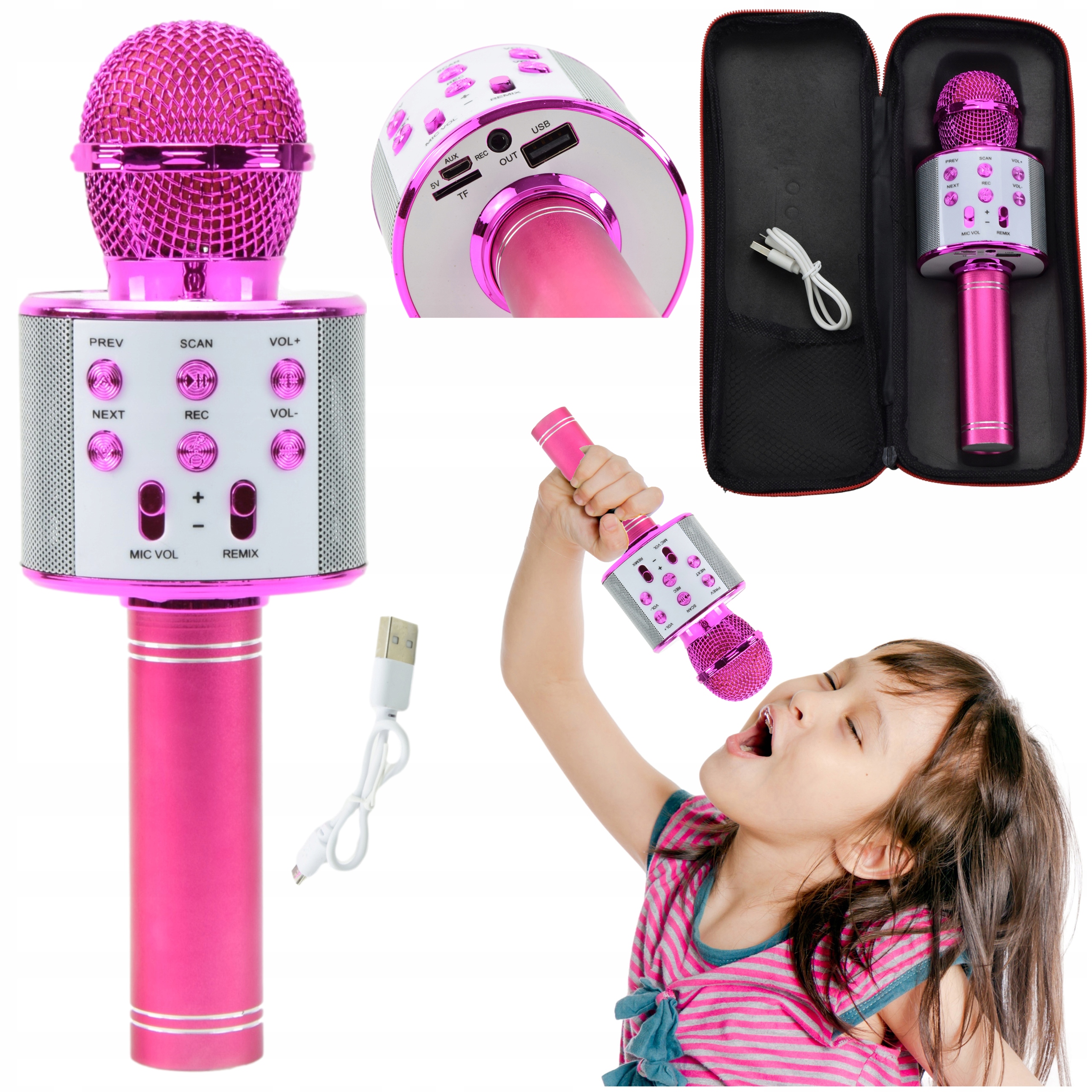 КАРАОКЕ МІКРОФОН BLUETOOTH ЧОХОЛ WIRELESS microSD SPEAKER РОЖЕВИЙ