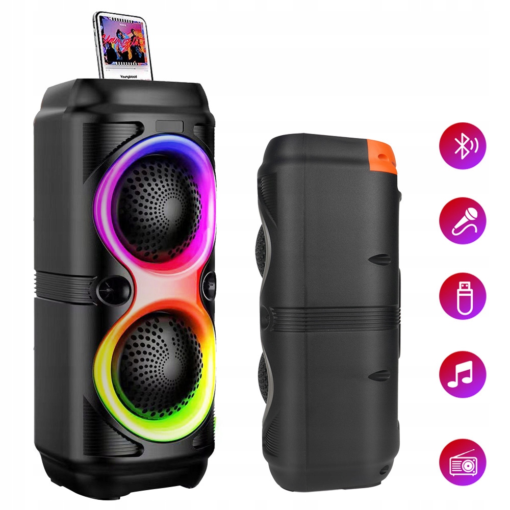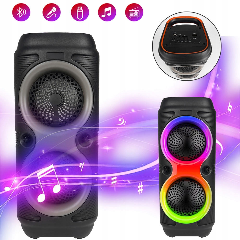 портативний динамік Bluetooth, два динаміки, стереосистема сабвуфера на одну партію, освітлення RGB, караоке, сильний бас з мікрофоном
