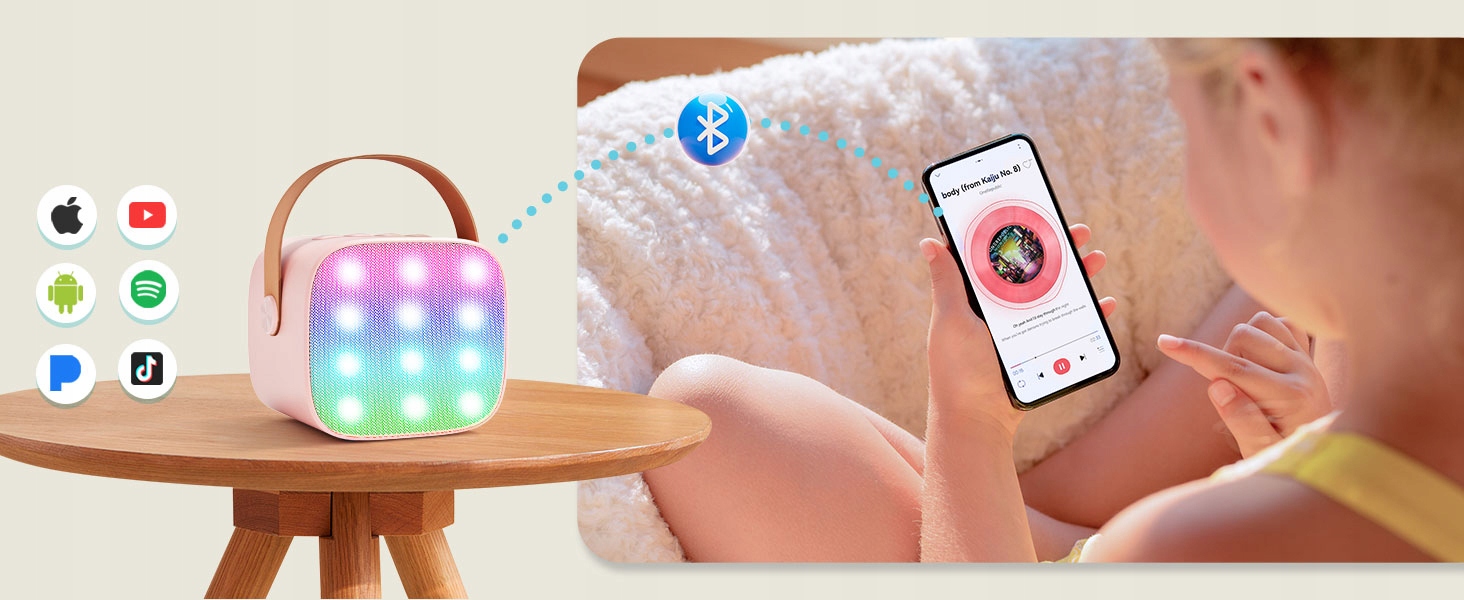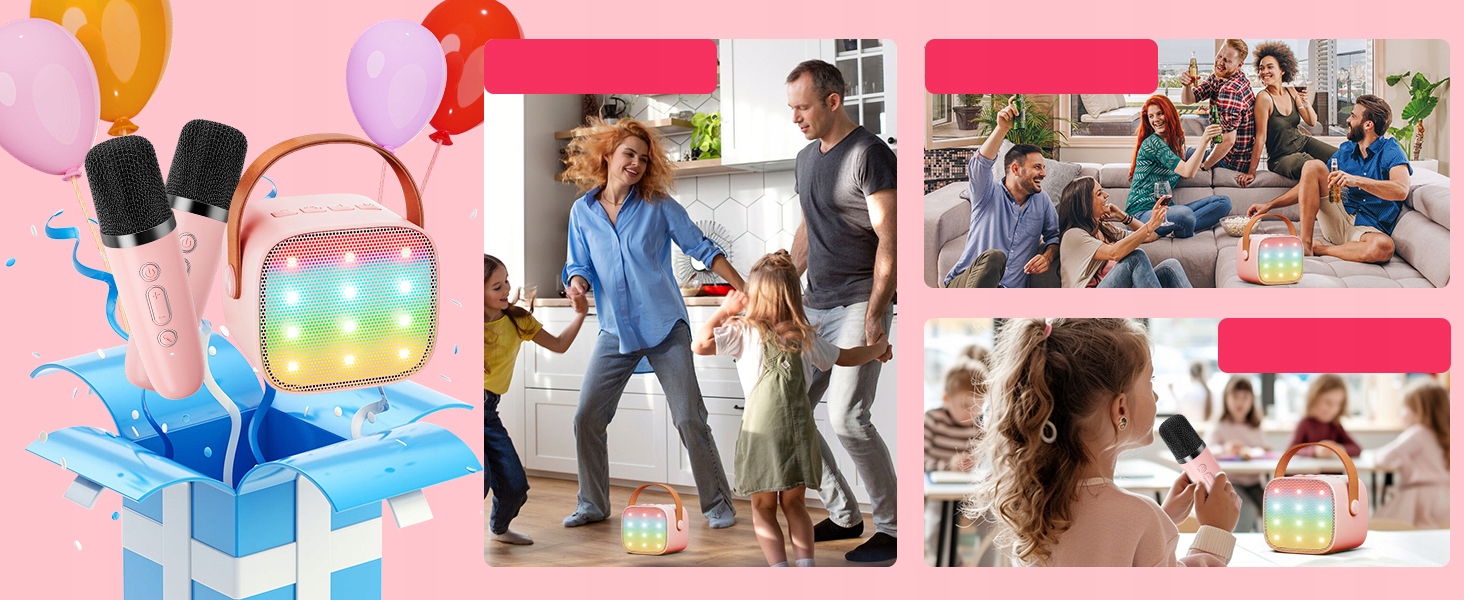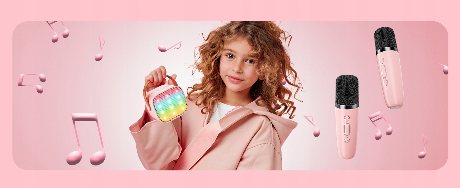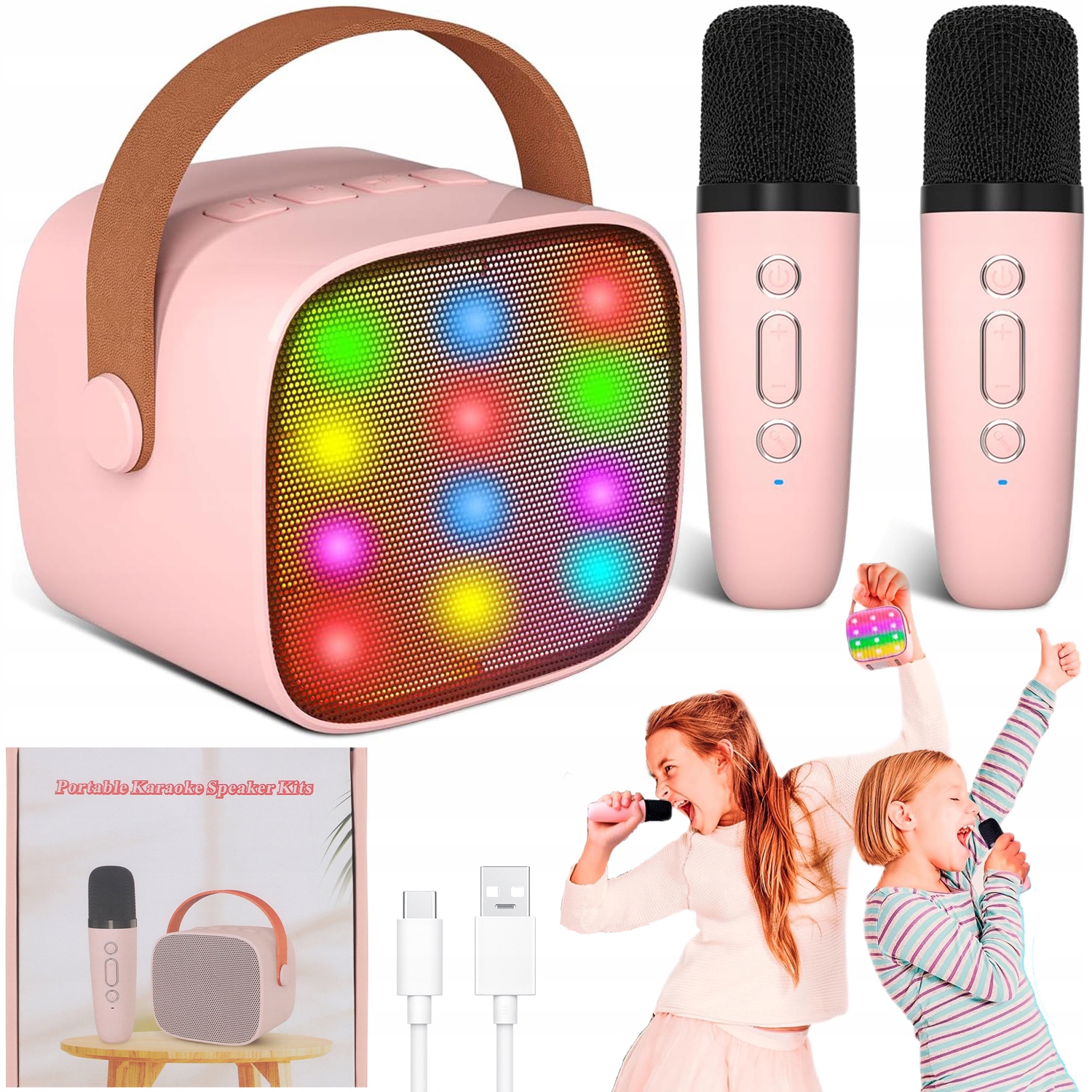 Karaoke Set 2x Microphone + Pink Bluetooth світлодіодний бездротовий динамік