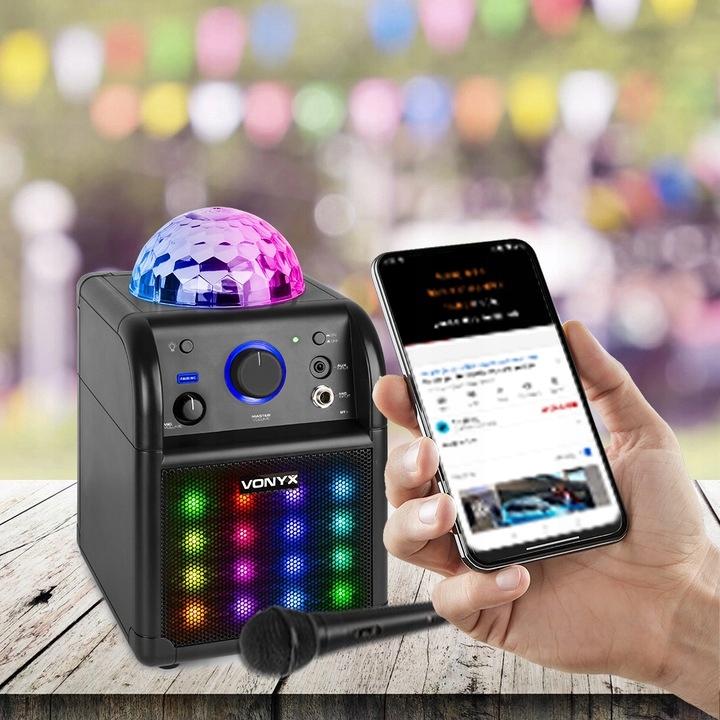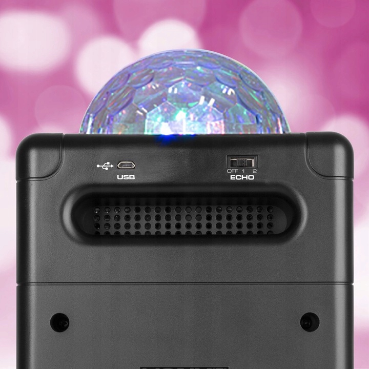 Цей універсальний набір для караоке з надійною потужністю гарантує незабутню вечірку. На додаток до підсвічування в решітці динаміка, він має світловий ефект Jelly Ball у верхній частині. Тож у вас є повне налаштування звуку та світла в одному пристрої. Завдяки вбудованому акумулятору ви маєте повну свободу та мобільність. Ви можете співати, виступати та розважатися, де завгодно.