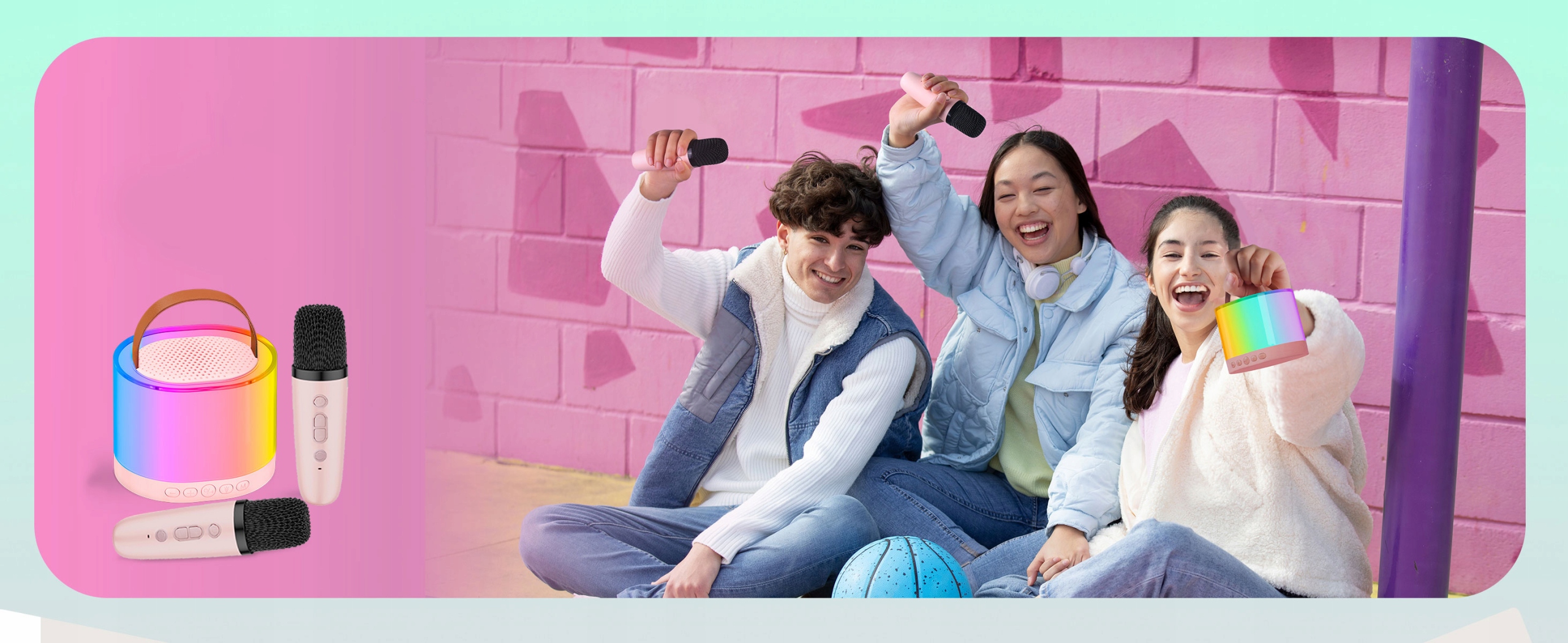 - Наш набір караоків оснащений 2 мікрофонами і є чарівним і смішним подарунком для ваших дітей. Насолоджуйтесь співати разом у сім'ї.