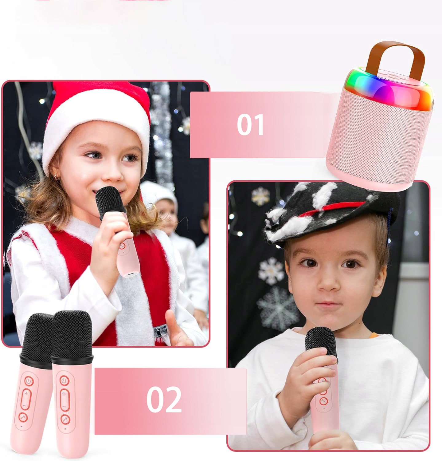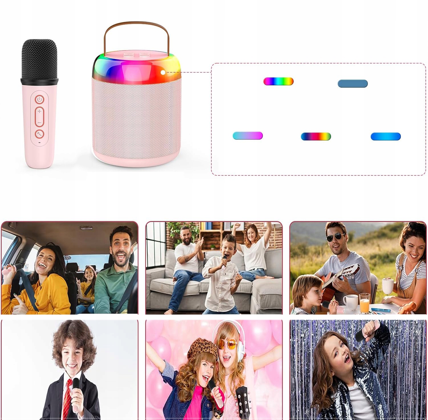 - Наша міні-караоке-машина оснащена високочутливим мікрофоном, одним динаміком і технологією подвійної діафрагми.
