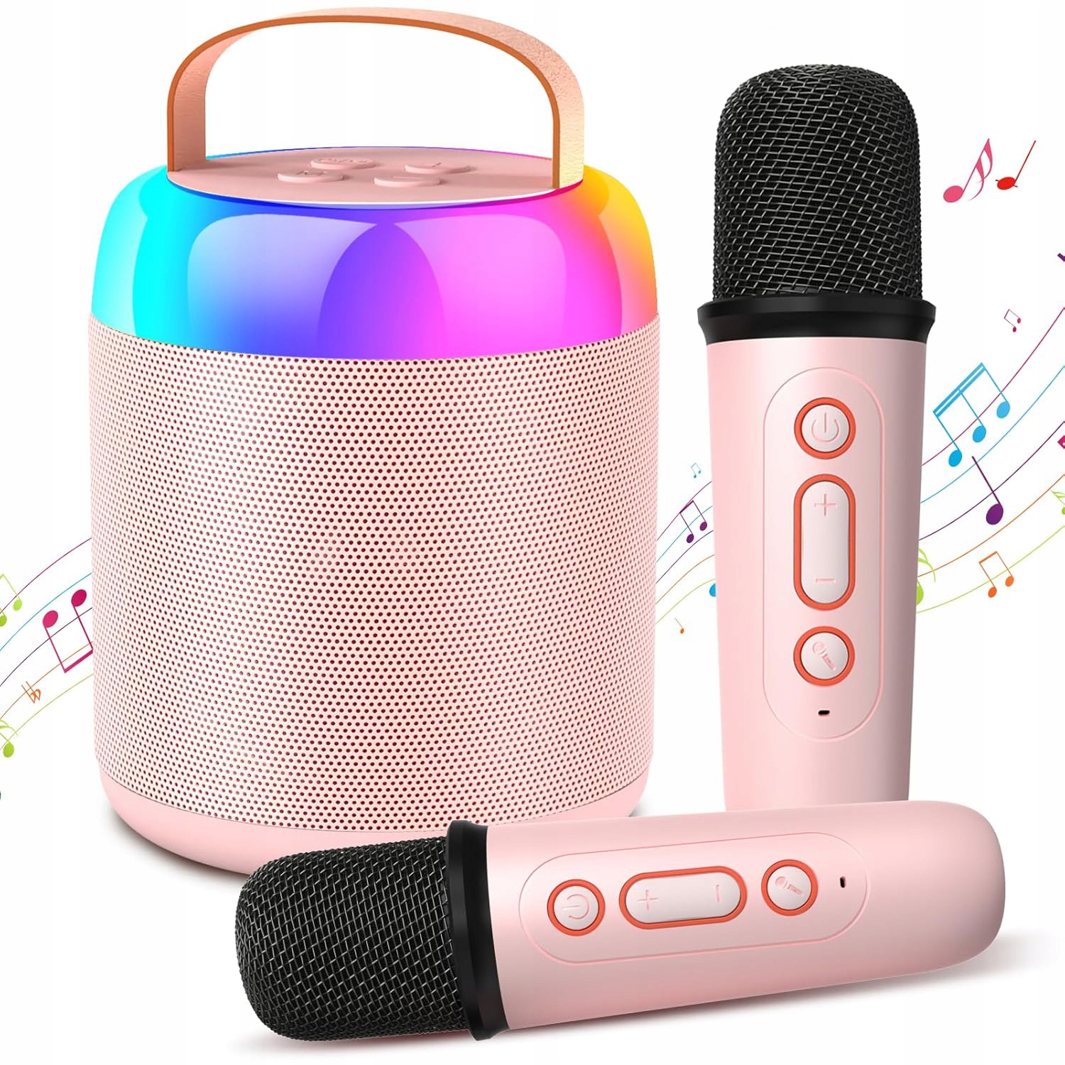 🎤 Два бездротові мікрофони, прості клавіші керування та миготливі світлодіодні індикатори підтримують карту Micro TF, підключення AUX, режим OTG.
