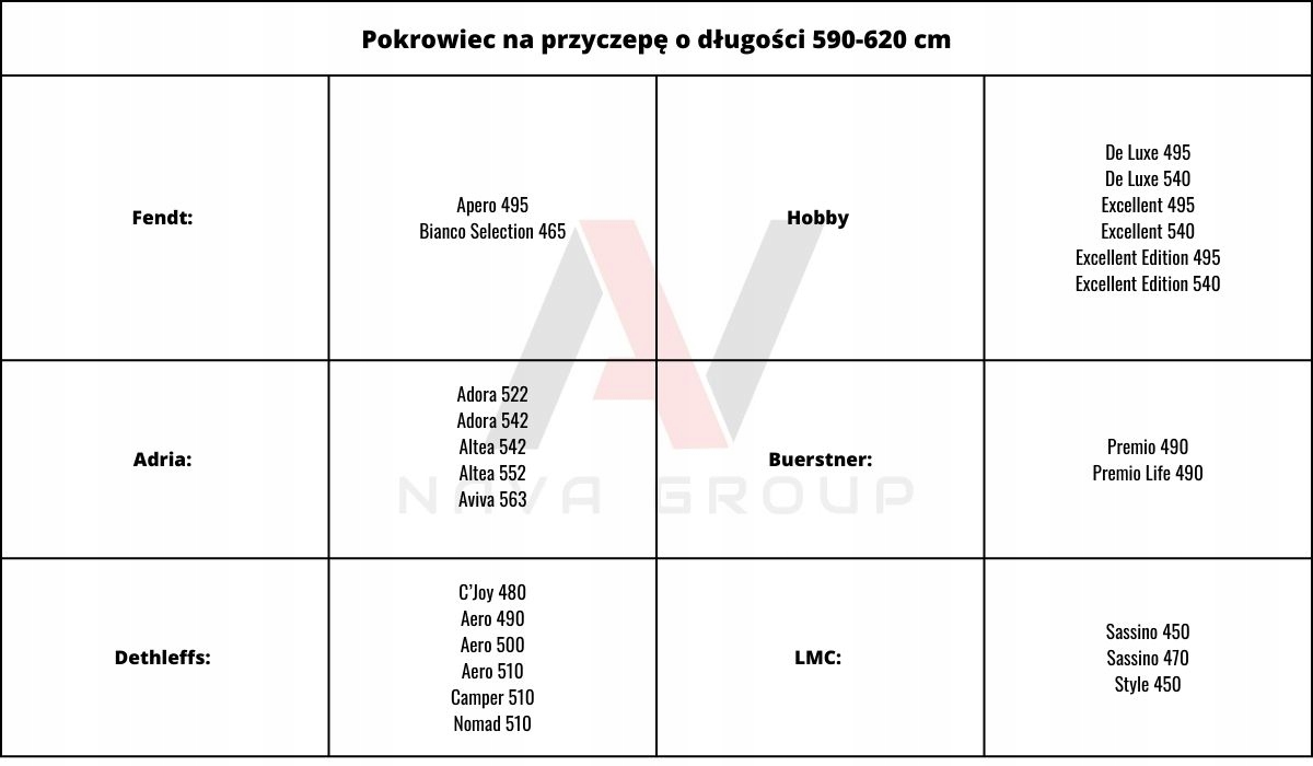 Чохол дуже добре підходить для караванів загальною довжиною 590-620 см.