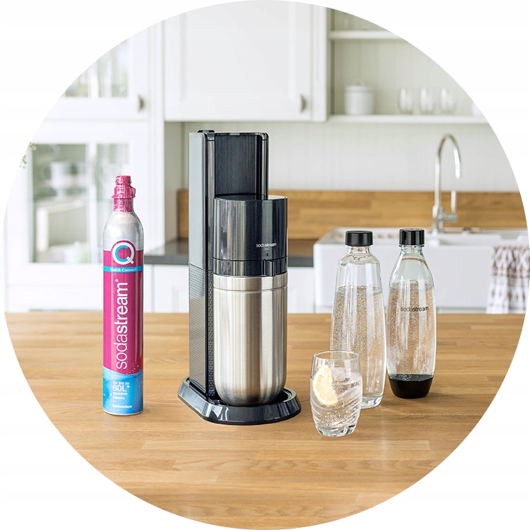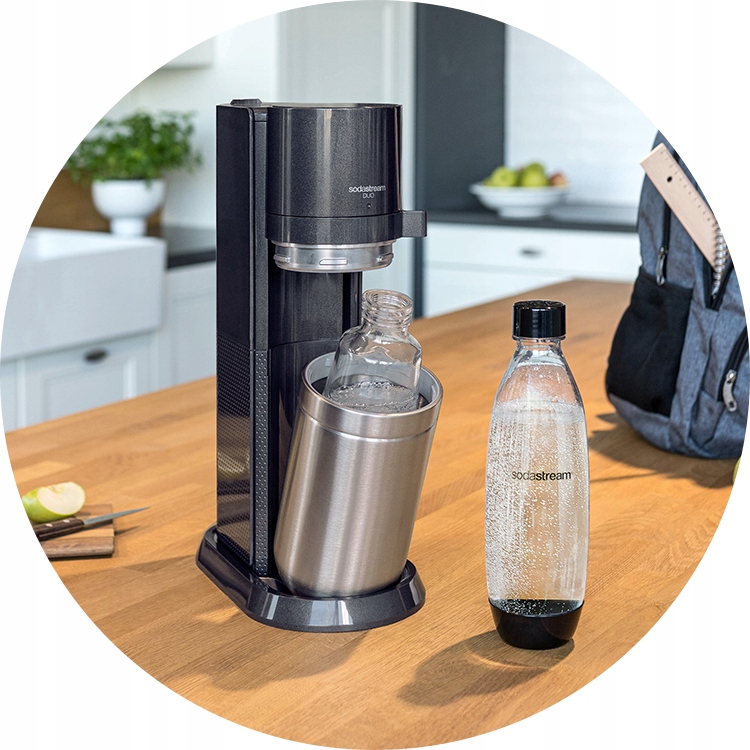 Насичувач SodaStream DUO забезпечує подвійну насолоду від створення ідеальних газованих напоїв. Використовуйте елегантний скляний графин, щоб подати їх вдома, або візьміть їх із собою в легкій пластиковій пляшці. Насолоджуйтеся свіжими бульбашками, де б ви не були!