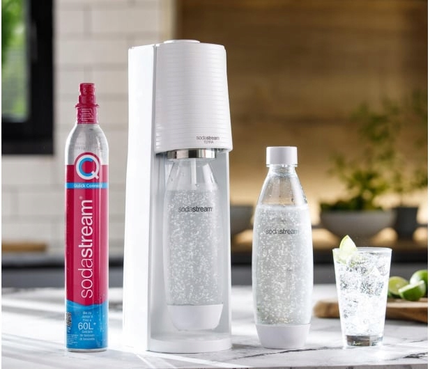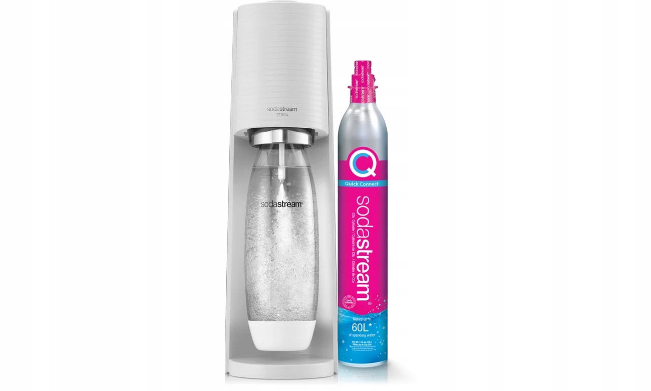 Апарат для газованих напоїв SodaStream TERRA WHITE — бездротовий і надзвичайно практичний автомат для газованих напоїв. Пристрій являє собою поєднання функціональності та витонченого дизайну. Матове покриття кавомашини, засноване на симетричних лініях, гарантує, що вона впишеться в будь-який інтер'єр. Вбудована велика кнопка-бульбашка забезпечує легке та зручне керування.