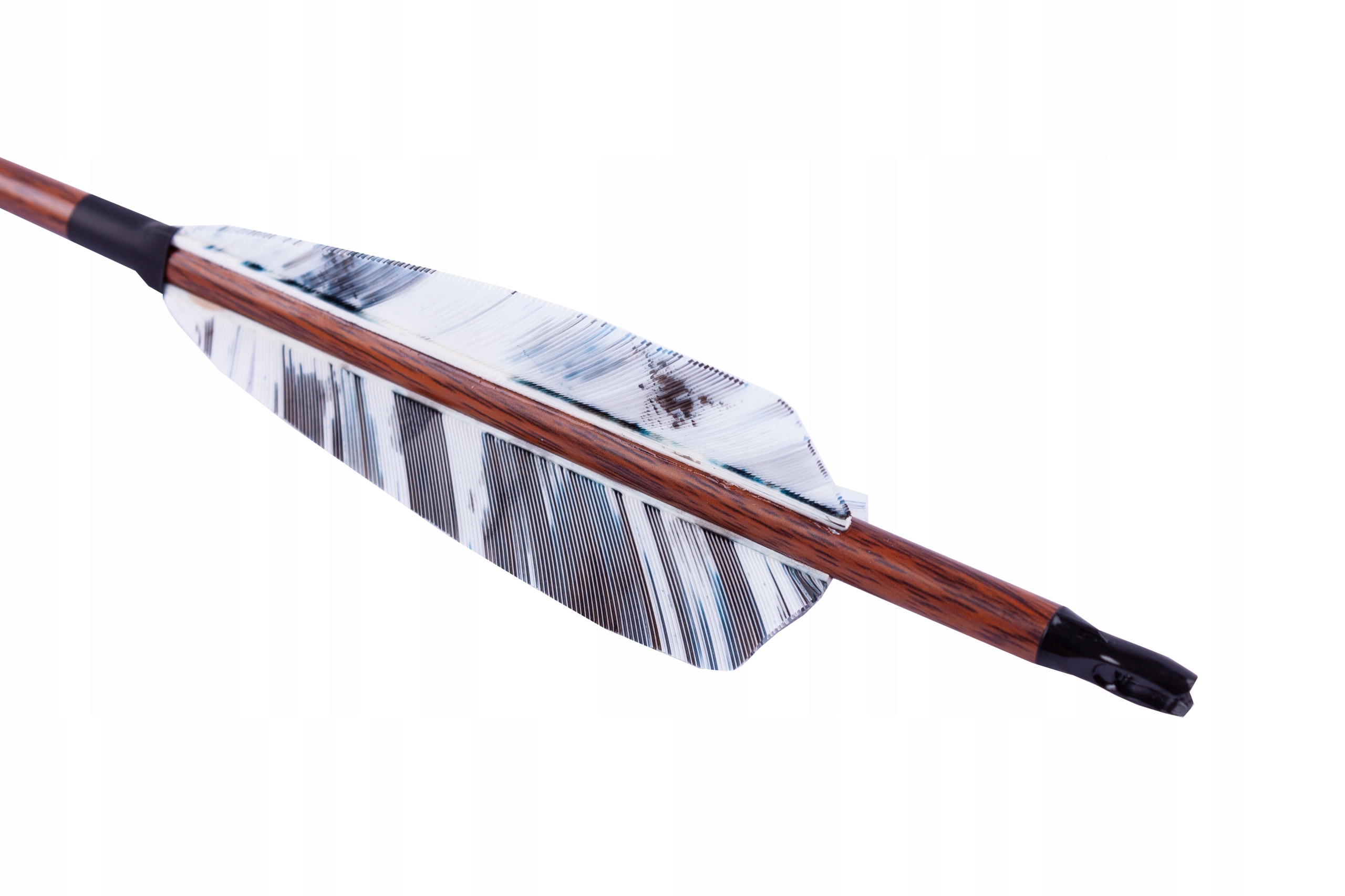 До стріли назавжди прикріплені три в’язки індичого пір’я дуже цікавим візерунком у білу смужку.
