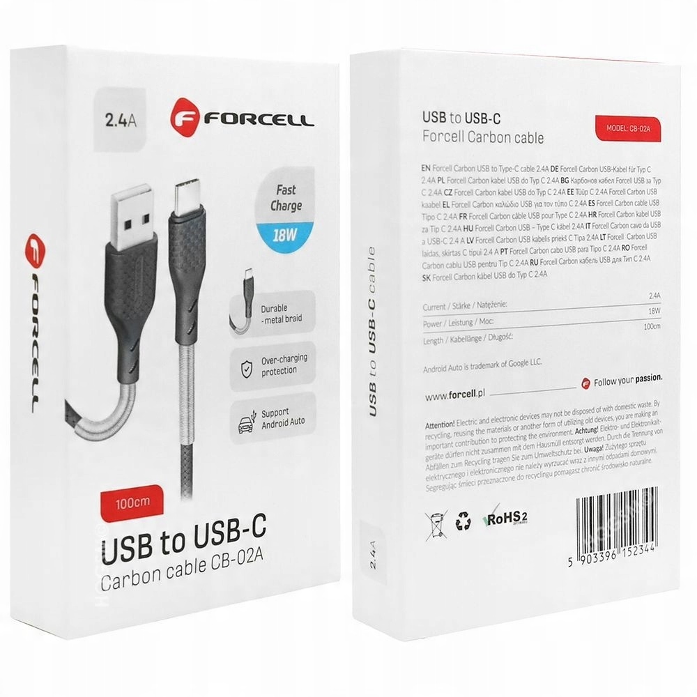 Forcell | Карбоновий USB-кабель USB-C 18 Вт | Android Auto | 100 см