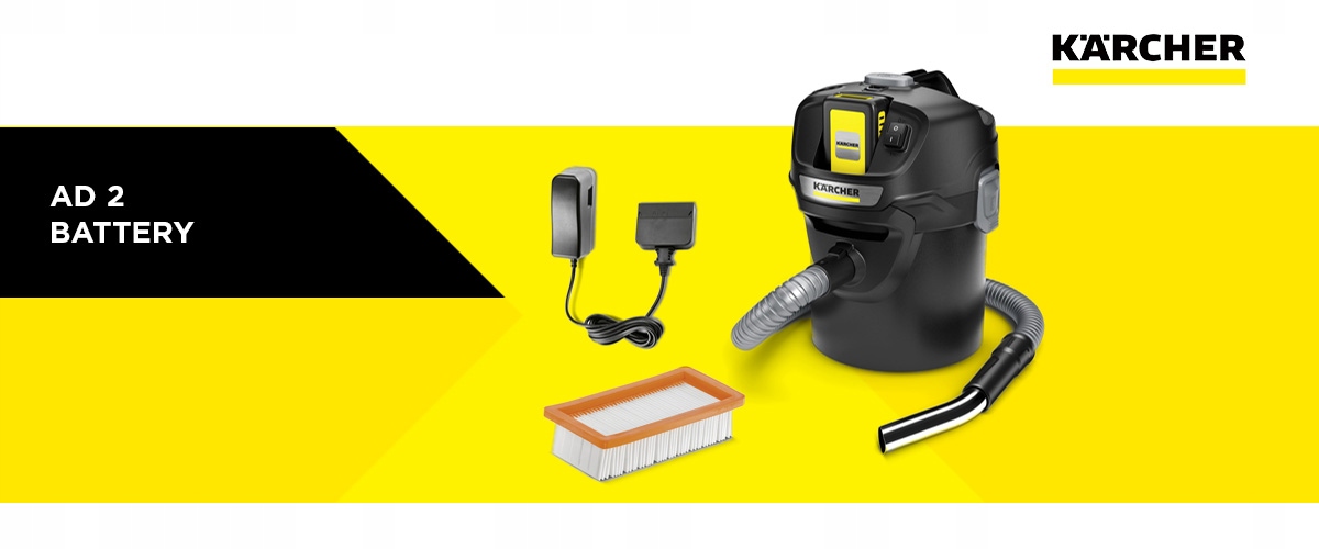 Призначений для швидкого очищення камінів, печей і грилів. Під час прибирання пристрій не утворює пилу. Наш камінний пилосос AD 2 працює від акумулятора. Має змінний акумулятор Kärcher на 18 В і зарядний пристрій.