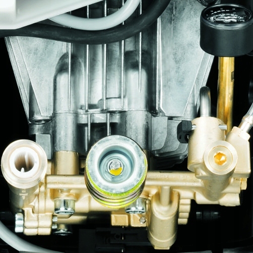 2-полюсний електродвигун в HD 6/15 M PLUS Karchera двигун з повітряним охолодженням b> , завдяки чому він пристосований до інтенсивної роботи. Латунна головка та керамічні поршні становлять обладнання 3-поршневого аксіального насоса.