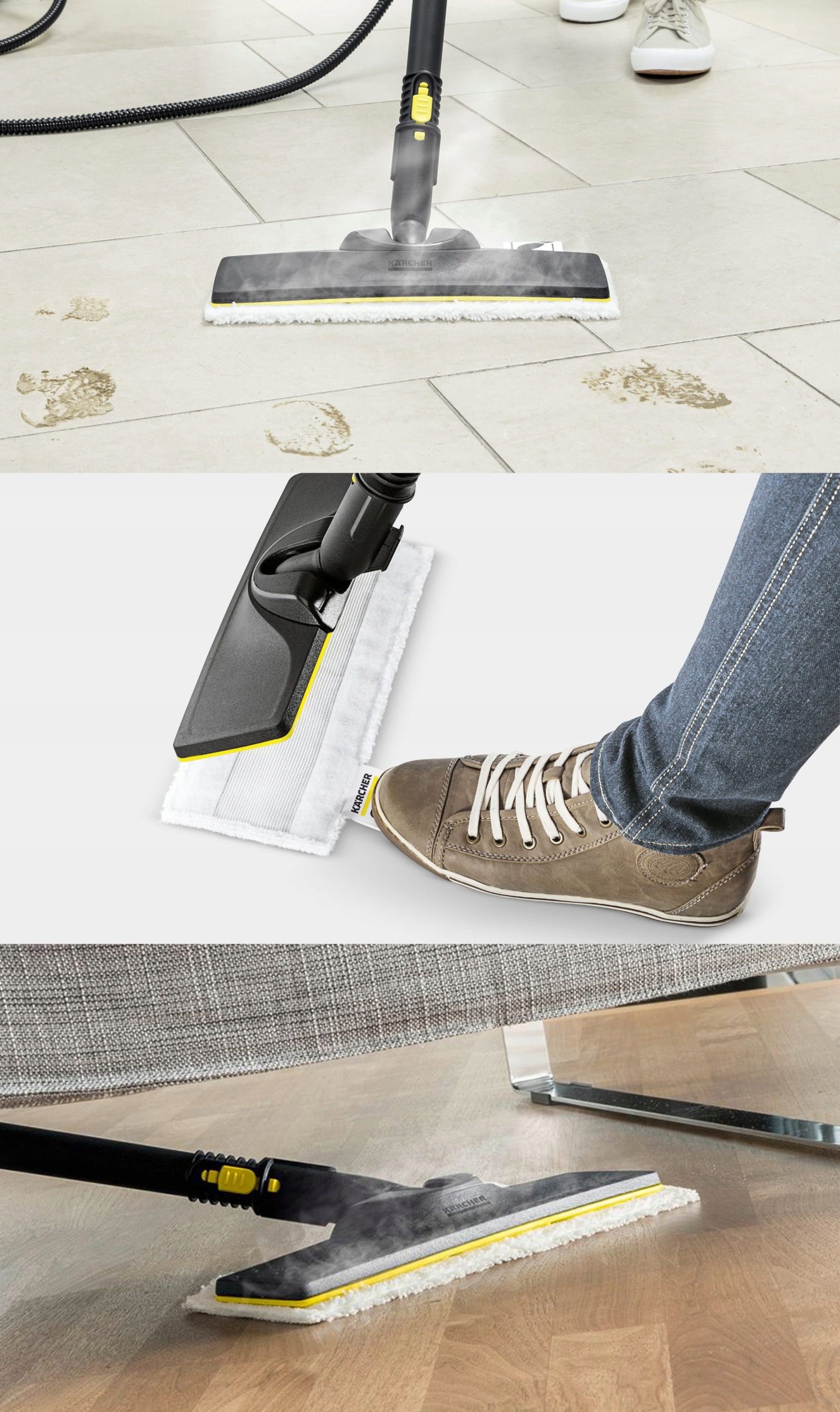 Регулюючи кількість пари, що подається на ручку, вихід пари можна регулювати залежно від ступеня забруднення поверхні, що очищається. Обладнання включає набір для миття підлоги, що складається з двох подовжувачів, насадки для підлоги та ганчірки для підлоги. У набір відпарювача входять багатофункціональні аксесуари, які допоможуть досягти ідеальних результатів очищення.