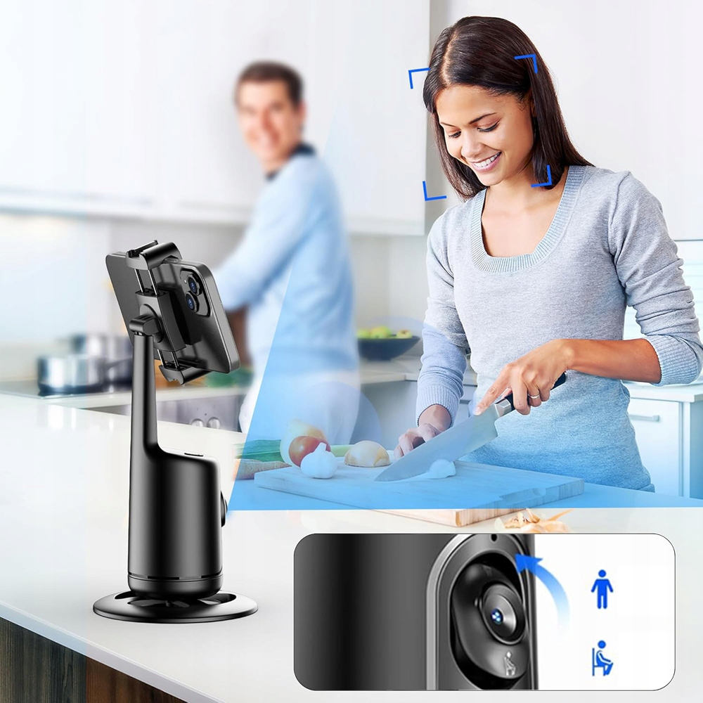 Автомобільний штатив із відстеженням обличчя використовує інтелектуальну технологію штучного інтелекту, яка автоматично виявляє та відстежує обличчя чи тіло користувача, обертаючись на 360° відповідно до його руху. Ви можете регулювати кут нахилу залежно від свого положення (сидячи/стоячи). Ви також можете вибрати горизонтальний або вертикальний режим камери. Де б ви не були, ви завжди в центрі уваги.