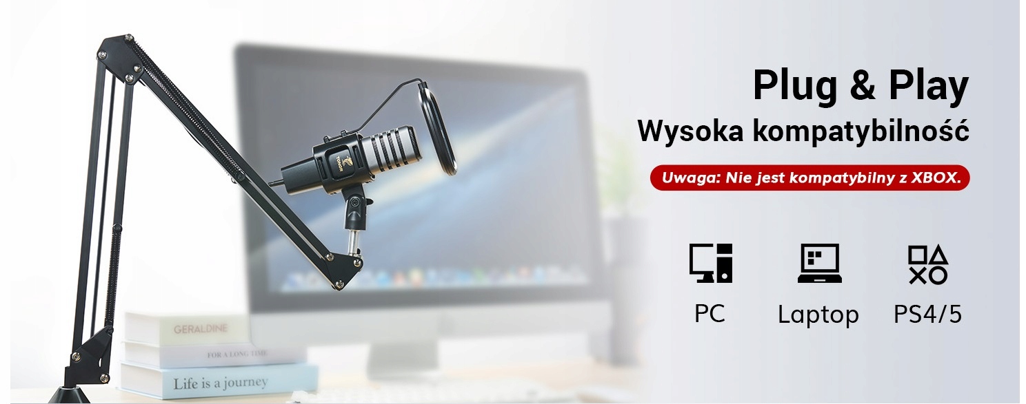 підключення та відтворення: З'єднання проводиться за допомогою порту USB 2.0, який не потребує додаткових драйверів. Цей USB -мікрофон ідеально підходить для ігор, запису, YouTube, потокового, подкаста, Zoom/Skype Online. Сумісний з Windows, Mac та Linux, PS4/5. (Він не сумісний з Xbox)