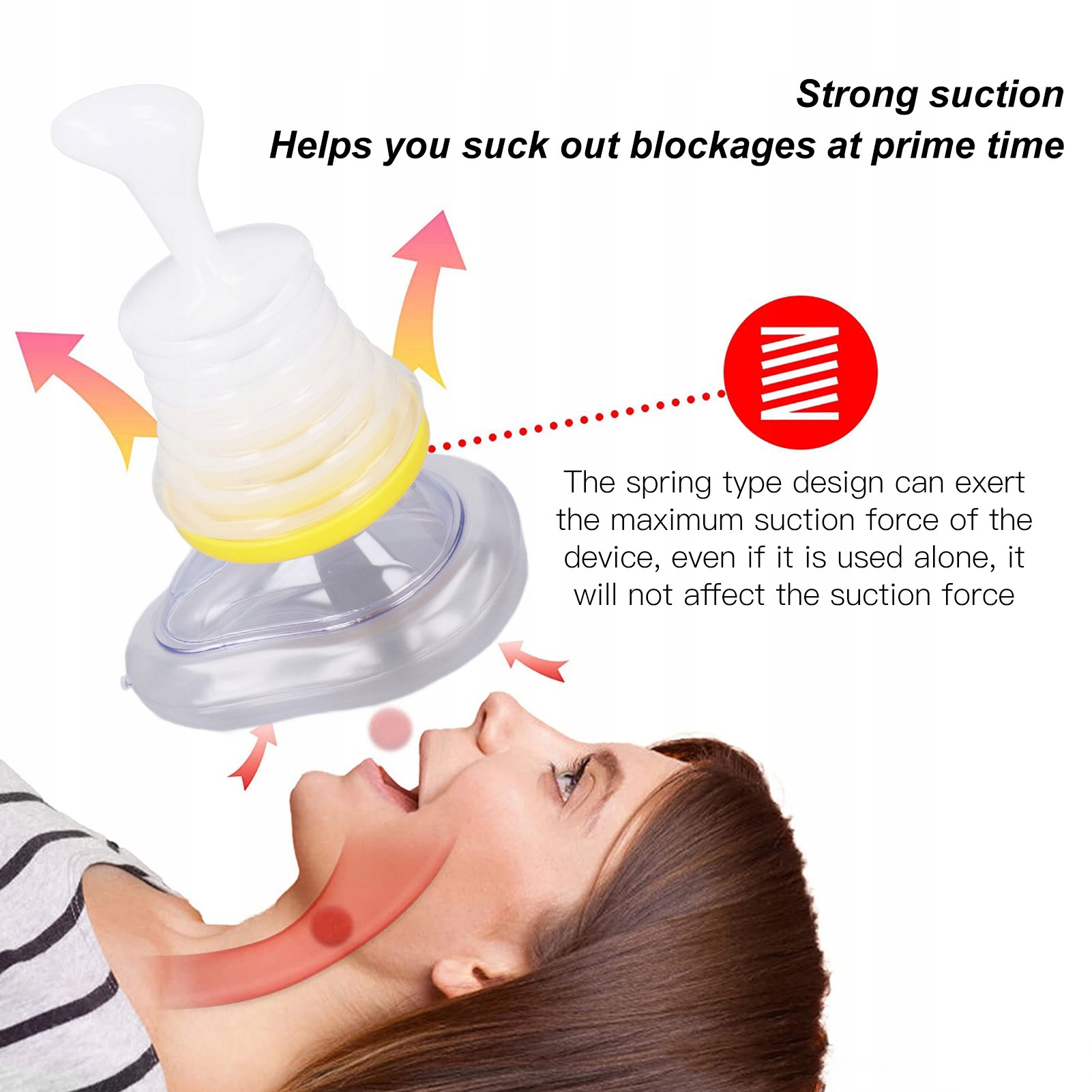 4. Потужне всмоктування: конструкція пружинного типу може створювати максимальну силу всмоктування пристрою, допомагає всмоктувати засмічення в найкращий час, ергономічна ручка, яку легко тримати та використовувати.